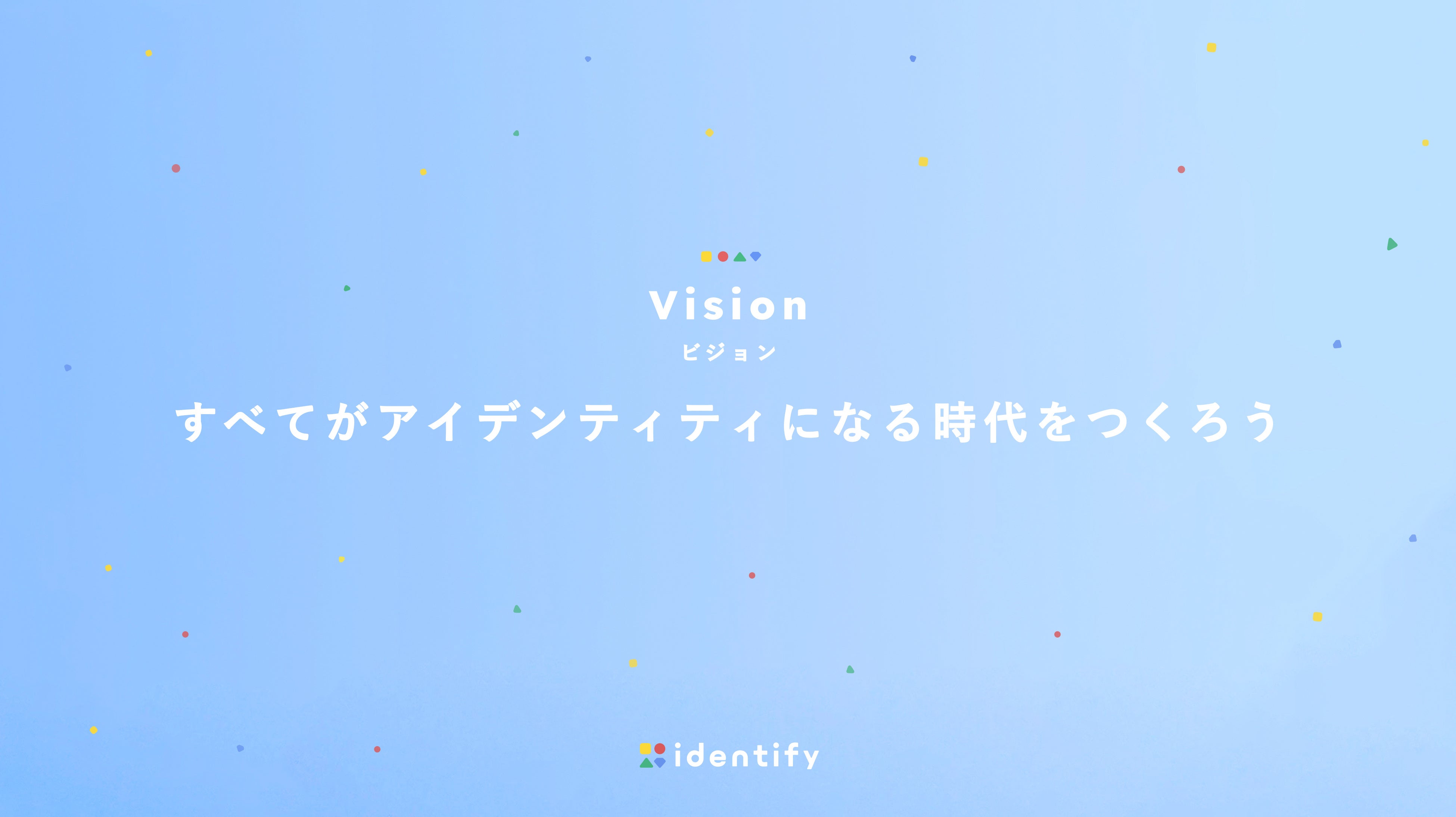 今回アップデートした、当社が実現したい未来であるVision「すべてがアイデンティティになる時代をつくろう」との一貫性を持たせ、さらなる事業や組織の拡大のため、社名を「identify株式会社」に変更いたしました。