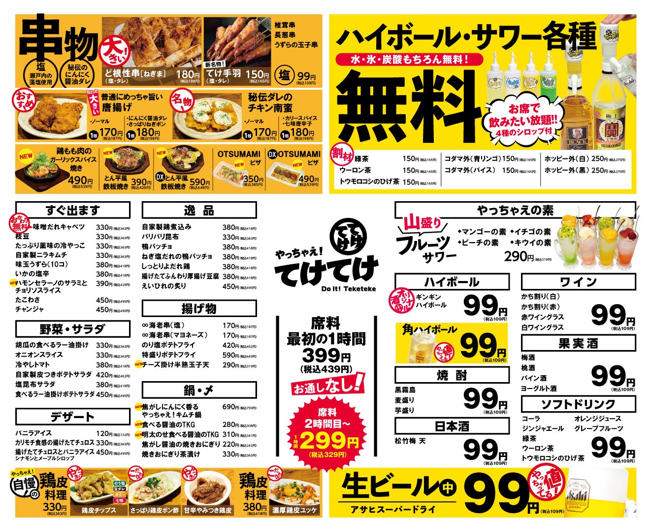 値上がりが厳しいこの時期だからこそ『やっちゃえ!てけてけ』は、安く・美味しい商品ラインナップでお客様の”せんべろ”を応援します。