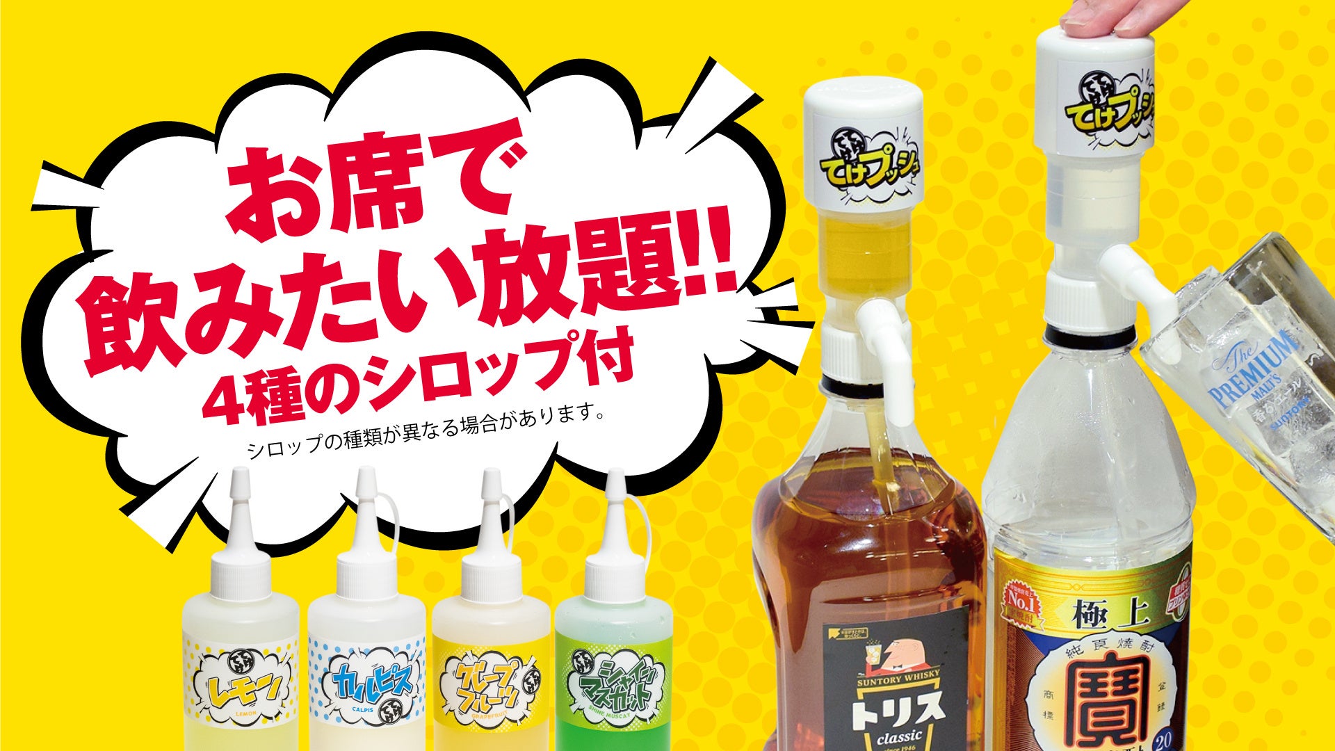 - 大好評!「ハイボールもサワーもお席で飲みたい放題 ”てけプッシュ”」の専門業態!