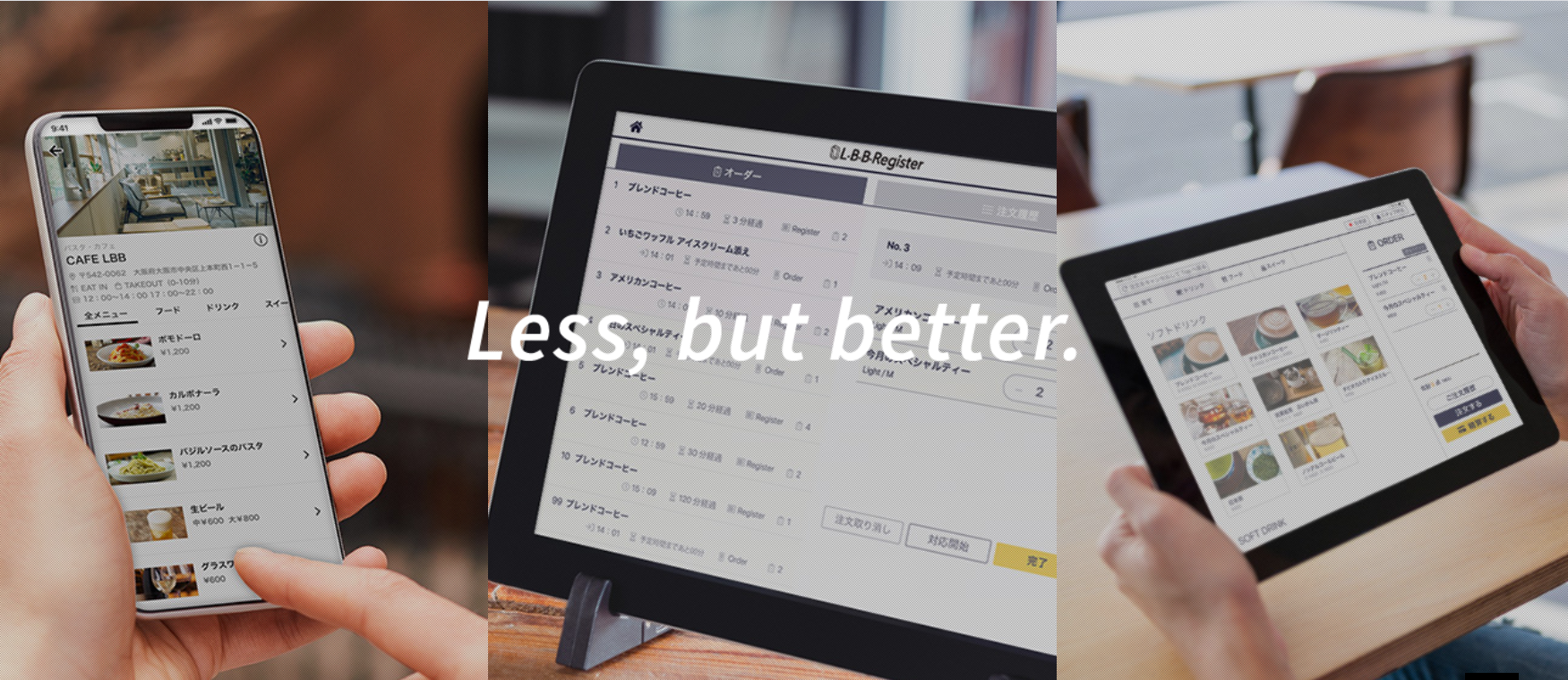 お客さまのスマートフォンを利用し、テイクアウトやテーブルからの事前注文・事前決済に対応したモバイルオーダーシステムを開発。“Less, But Better.”(より少なく、しかしより良く)をコンセプトに新しい消費の創造を目指しています。