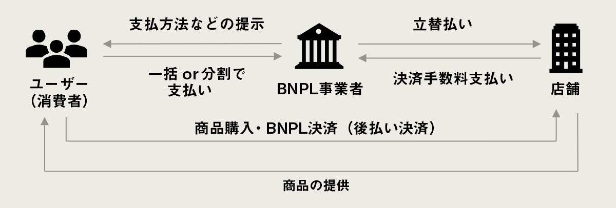 ①ユーザー(消費者)がオンラインで商品を購入する際に「BNPL」での支払いを選択