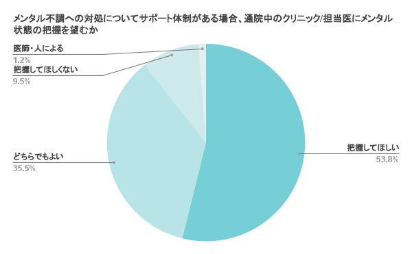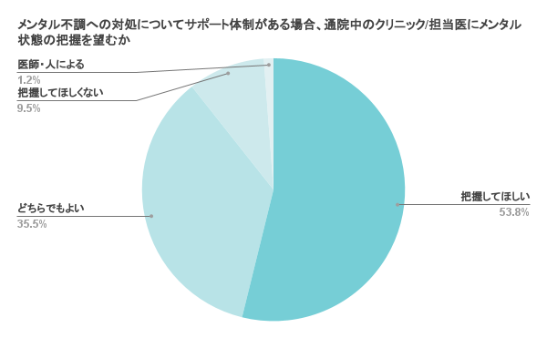 設問2:メンタル不調への対処についてサポート体制がある場合、通院中のクリニック/担当医にメンタル状態の把握を望むか