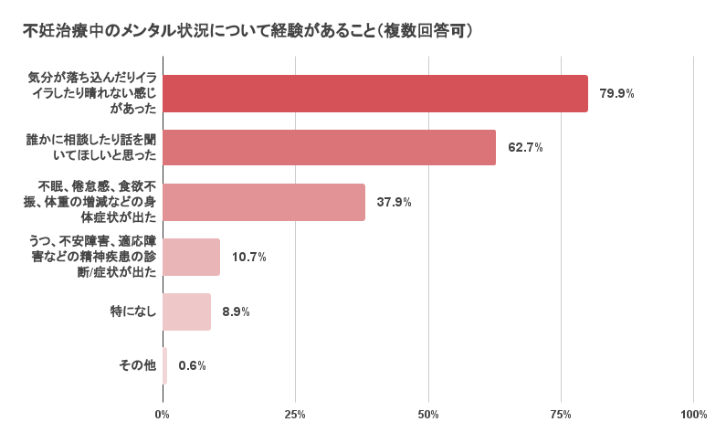 ninpathが不妊治療経験者のユーザーを対象に実施したアンケートによると、不妊治療は患者に様々な心理的影響が出ることと、自身のメンタル状況を担当医にも把握してほしいというニーズがあることがわかりました。