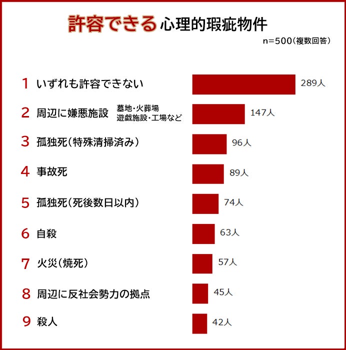 【500人にアンケート調査!許容できる心理的瑕疵物件のレベルランキング】みんなが選ぶダントツの第1位は?