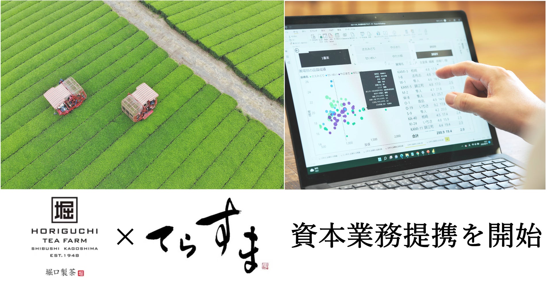 農業特化の経営管理クラウド「RightARM(ライトアーム)」を開発・提供するアグリテックスタートアップ・テラスマイル株式会社(本社:宮崎県宮崎市、代表取締役:生駒祐一)は、5月末日より鹿児島堀口製茶有限会社(本社:鹿児島県志布志市、代表取締役:堀口大輔)と資本業務提携を開始いたしました。