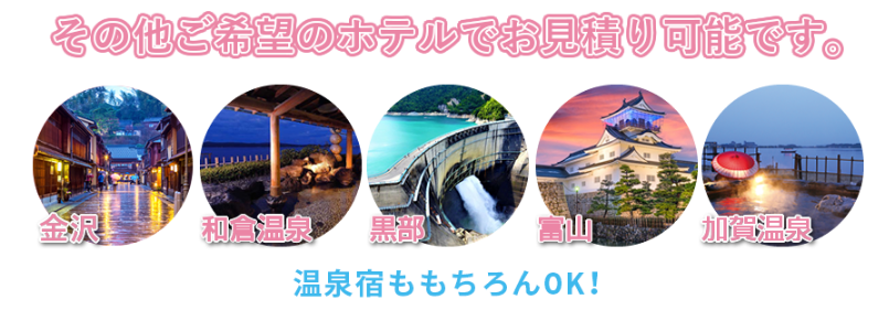 その他(金沢・和倉温泉・黒部・富山・加賀温泉など)ご希望のホテルでお見積り可能です。