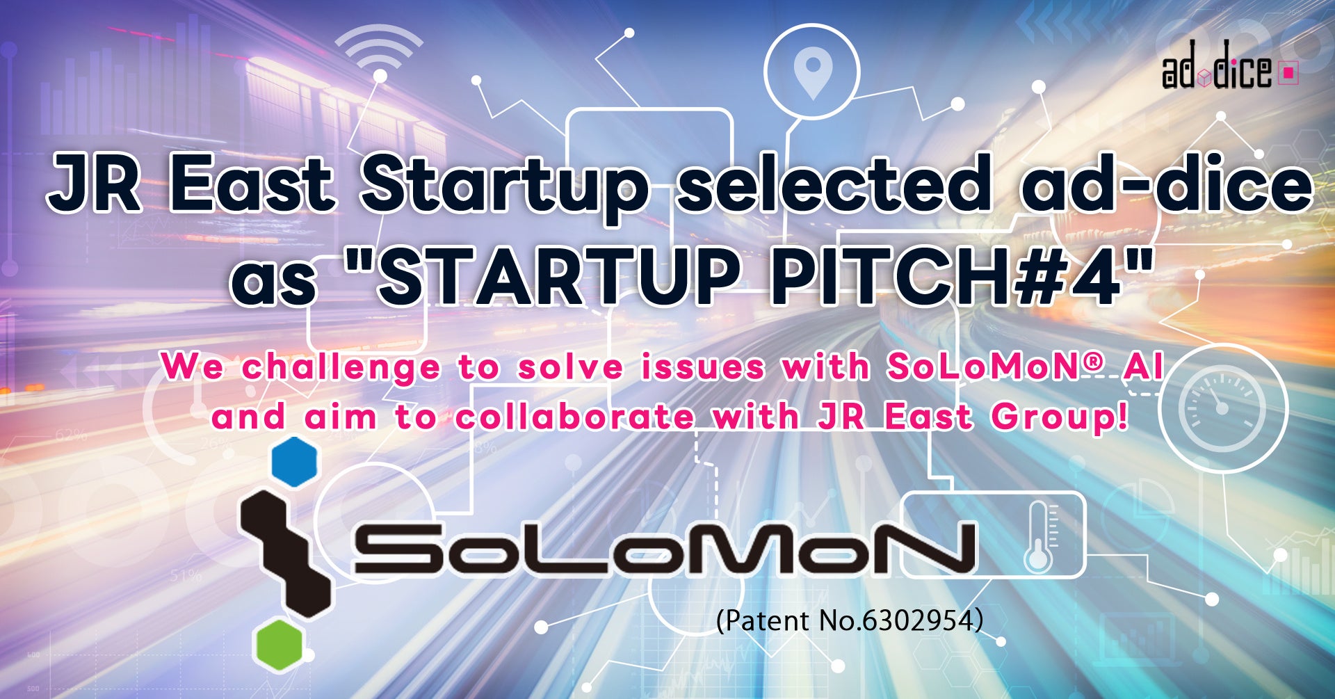 特許技術に基づく独自の「SoLoMoN®(ソロモン)AI」を提供する株式会社アドダイス(代表取締役CEO 伊東大輔)は、2022年12月5日(月)、JR東日本スタートアップ株式会社(代表取締役社長 柴田裕)が主催するマッチングイベント「STARTUP PITCH#4」において採択されたことを発表します。今後、2023年度中の実証実験開始、また将来的にはJR東日本グループとの協業を目指して挑戦して参ります。