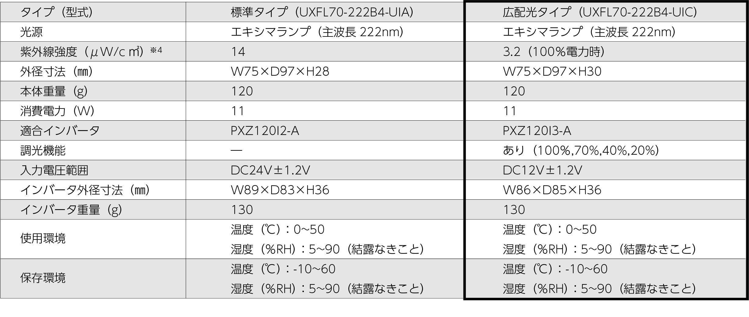 また、投入電力を調節できる機能を備えたインバータも新たに開発することで、紫外線関連の暴露許容限界値の規格内でも有人下における常時照射の設定が可能となりました(※3)。