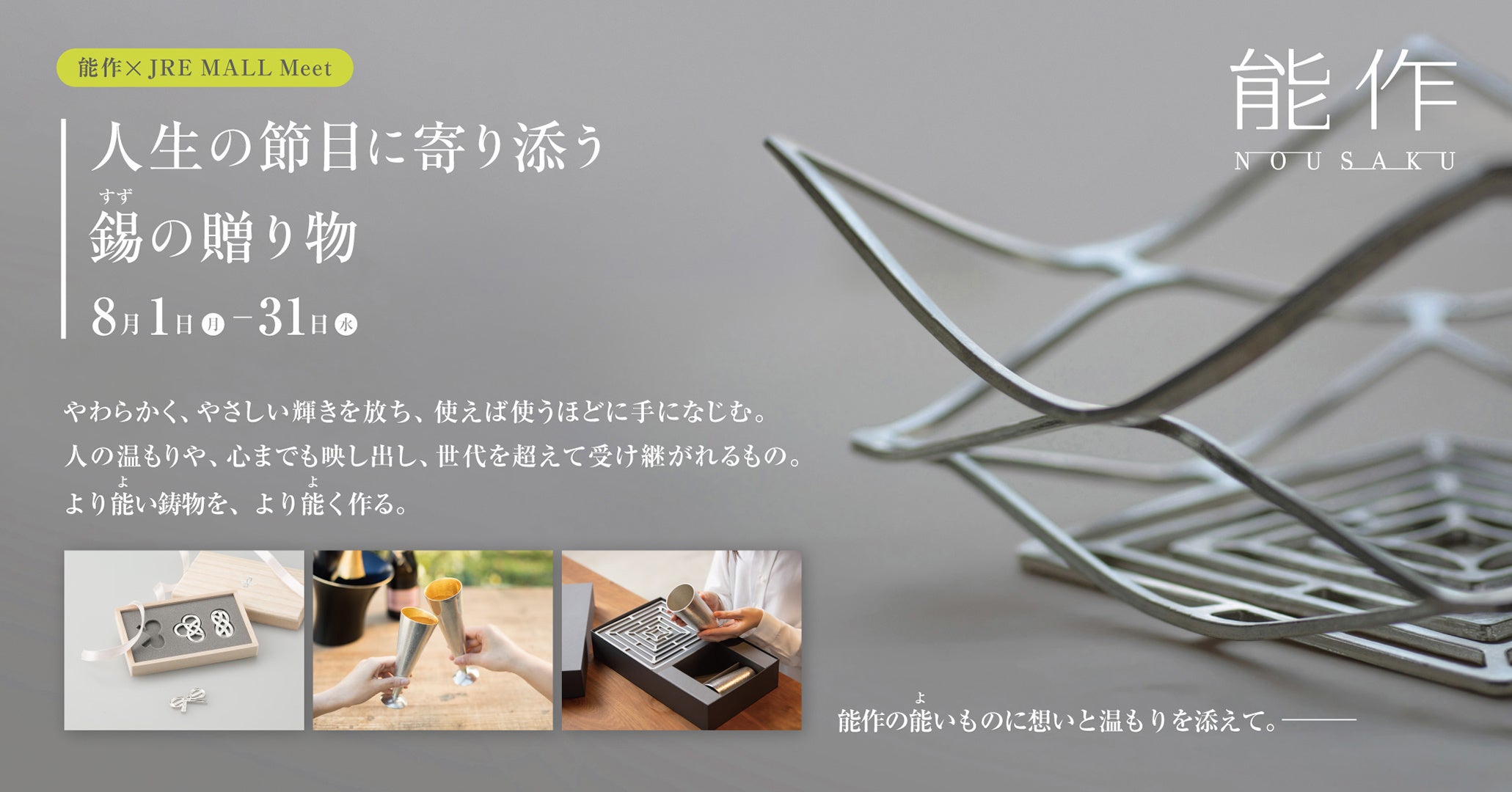 錫(すず)製品の製造販売を手掛ける株式会社能作(本社:富山県高岡市、代表取締役社長:能作克治、以下「当社」)は、東日本旅客鉄道株式会社(本社:東京都渋谷区、代表取締役社長:深澤祐二、以下「JR東日本」)が運営する、Alカメラを活用したオンライン接客型店舗「JRE MALL Meet」にて、当社製品の販売実験を2022年8月1日(月)より開始します。