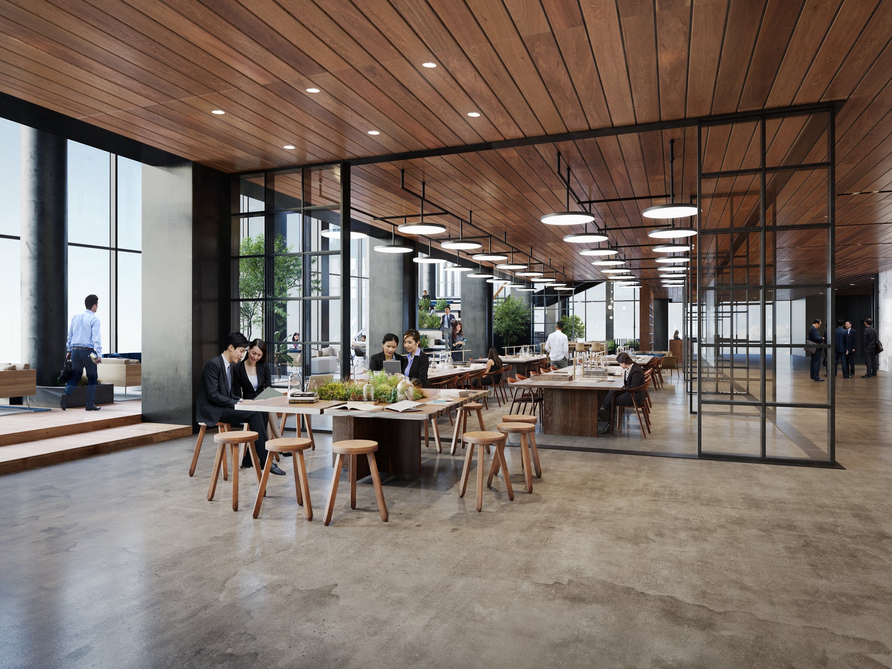 開放的な店内と豊富な席数により、オフィス入居者と一般のカフェ利用者が気兼ねなく過ごせる、幅広い利用者にとって居心地の良い空間が実現しています。