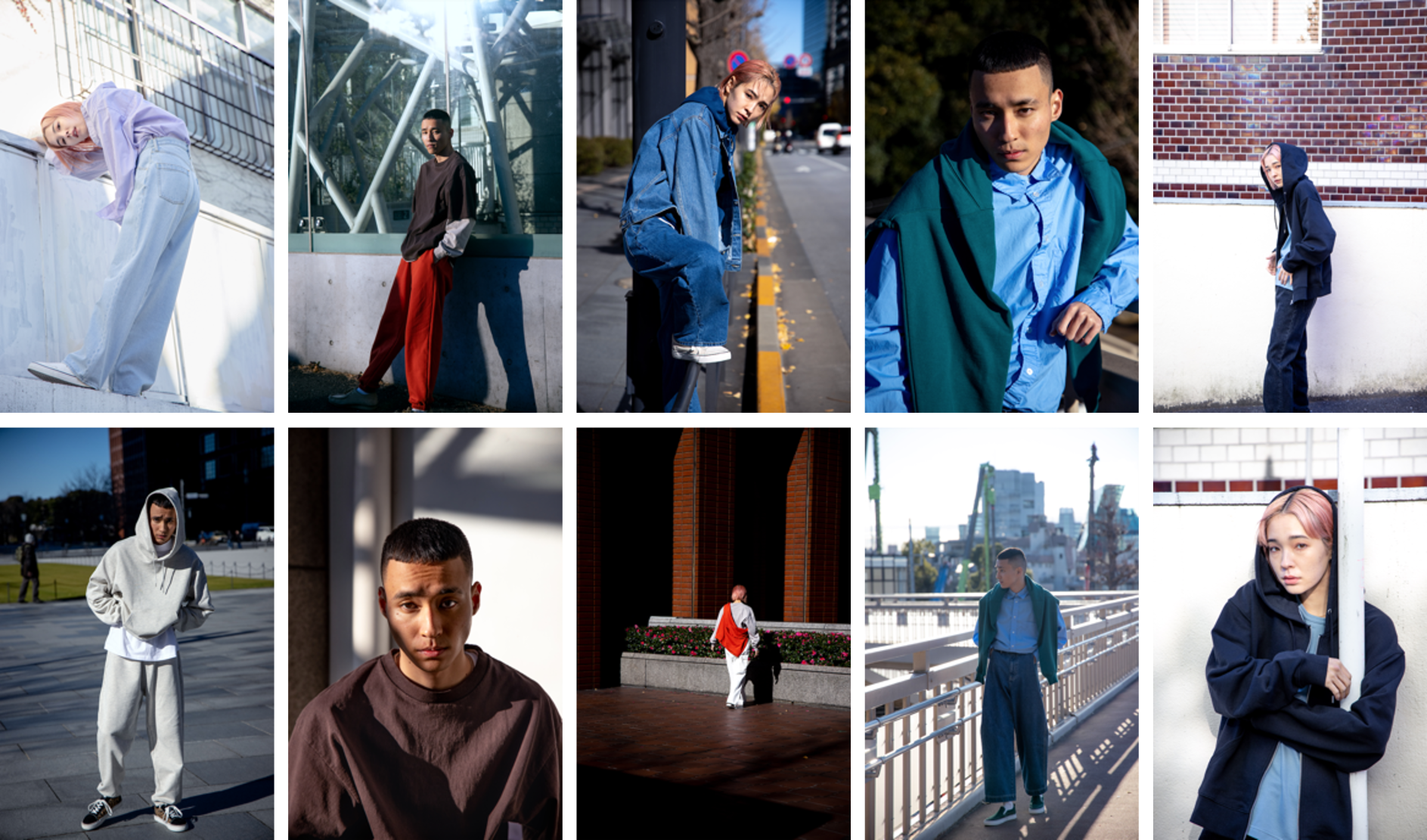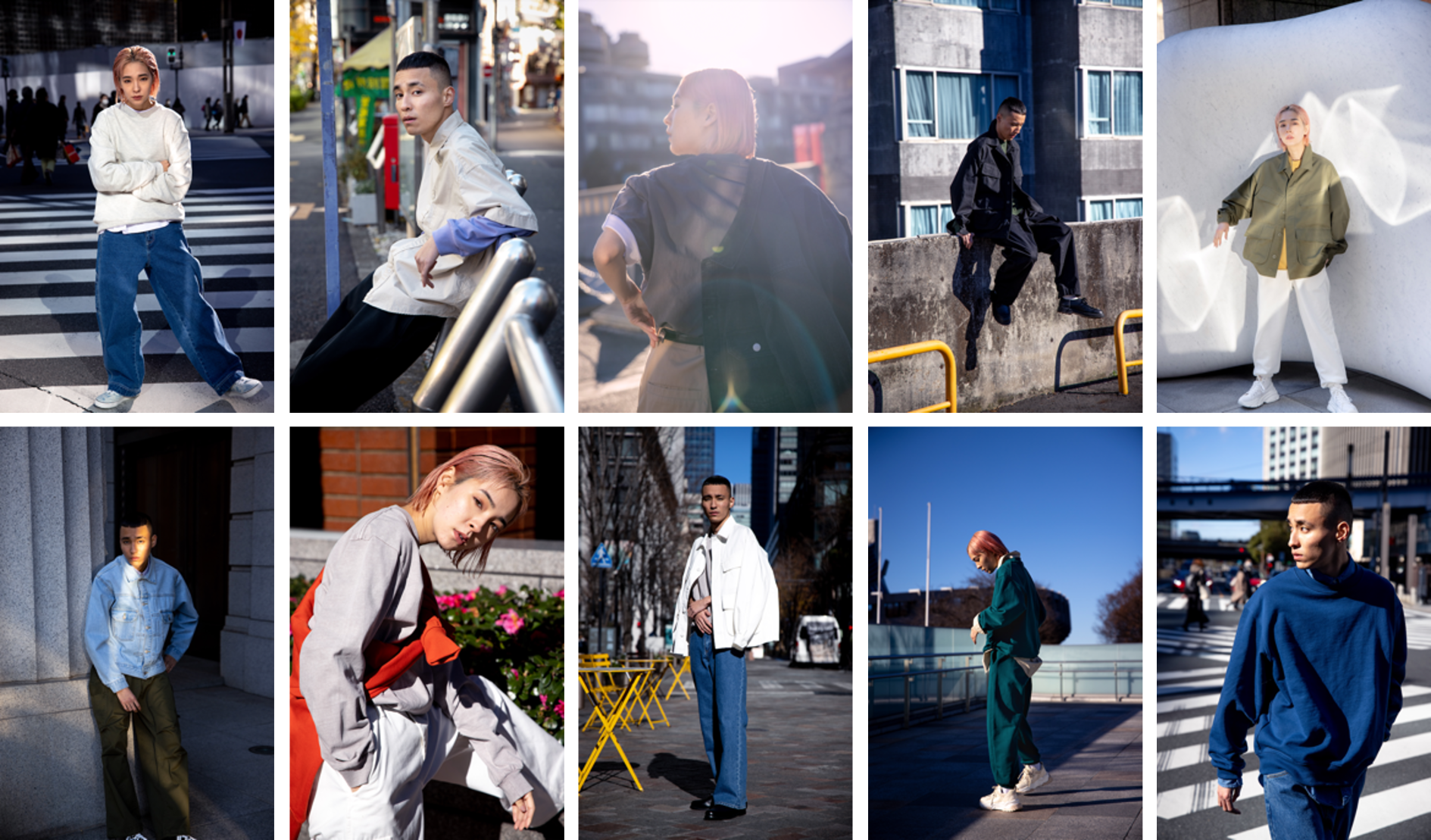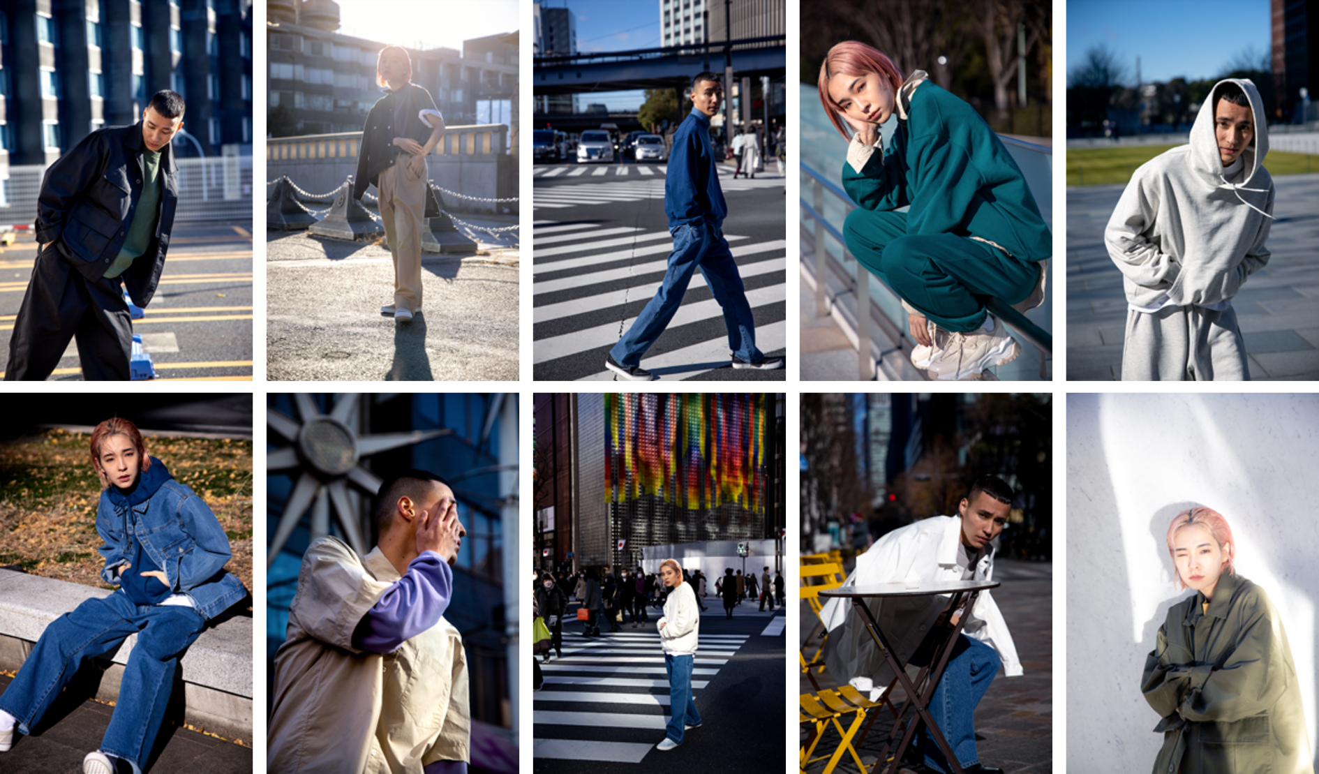 ビジュアル撮影では、シーンを変えて原宿と有楽町で撮影した。原宿では、WEGOの既存のカスタマーに向けて、ストリートでクールにファッショナブルに。有楽町では、新たに手に取って欲しいカスタマー層に向けて、仕事するシーンで着てもなんら遜色ないアイテムという事を表現したかった。