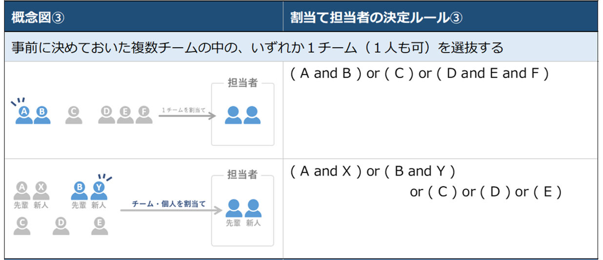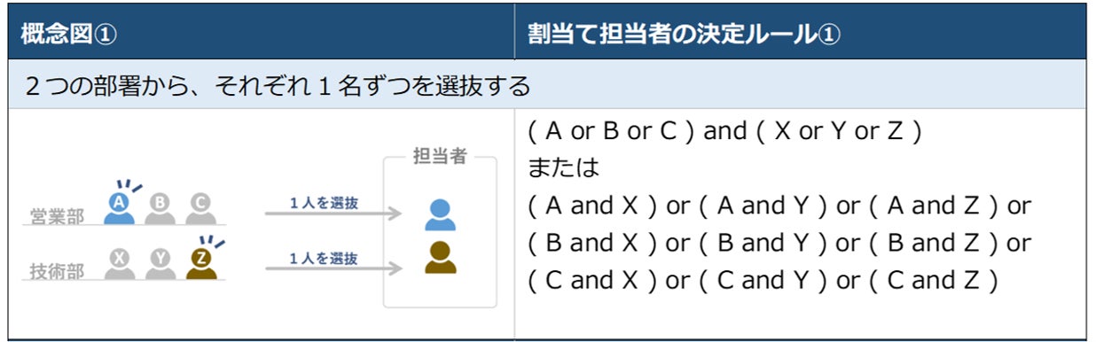 AND/ORを組み合わせた「担当者の決定ルール」であれば、どのようなルールも指定できる。