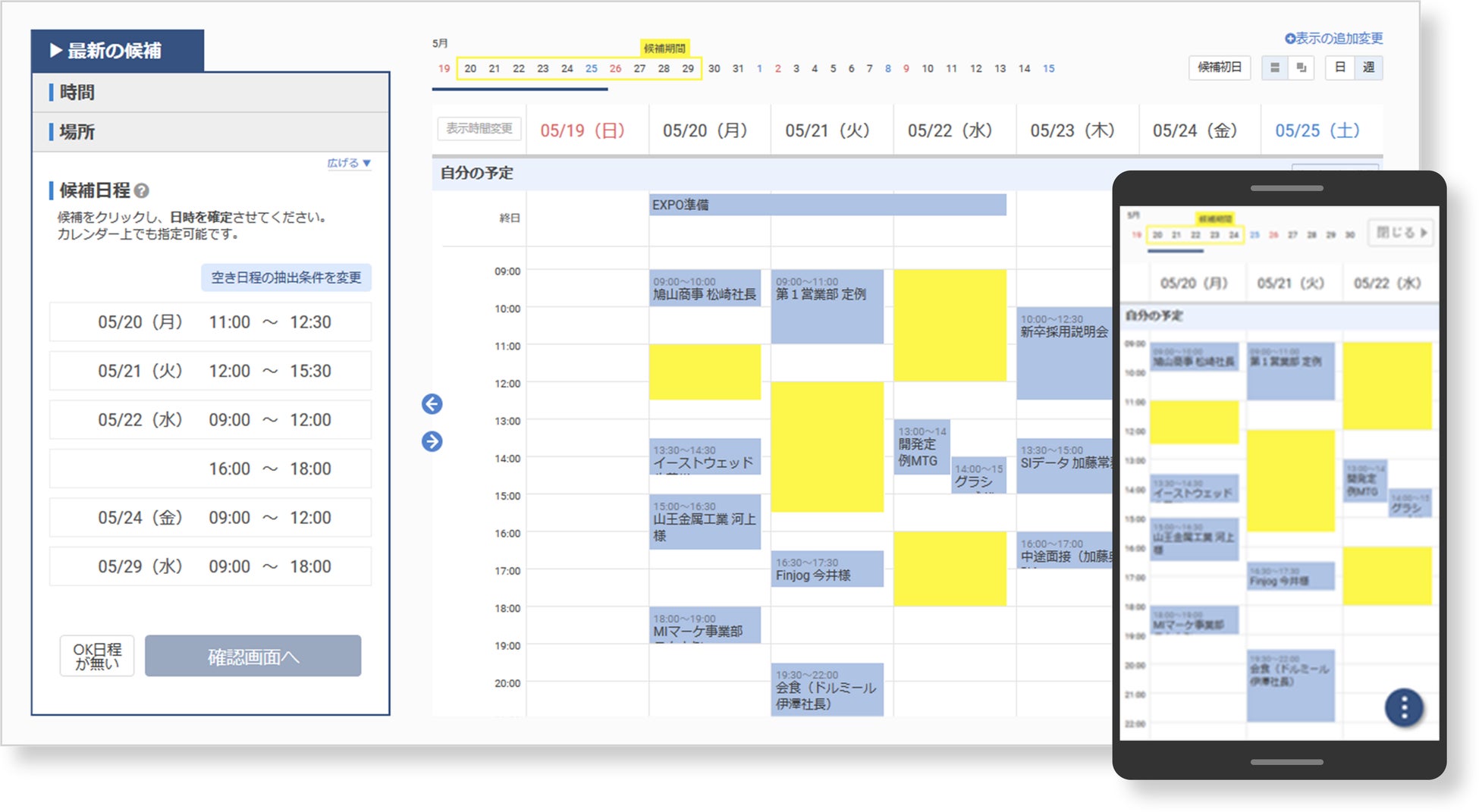 ・ ダブルブッキングなし … 常に空き日程で自動調整