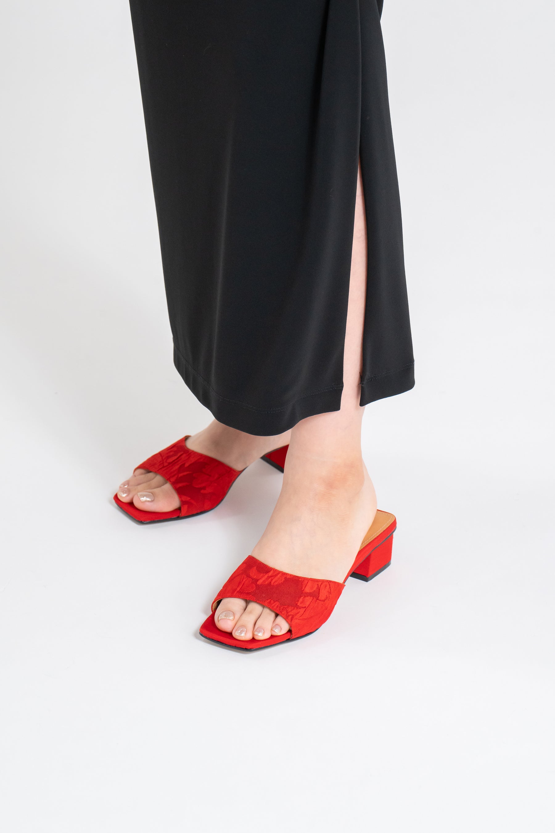 ホールド感を高めたバンドデザインはそのままに、ヒールをやや高く設計することで、よりエレガントで上品な佇まいへと昇華させました。