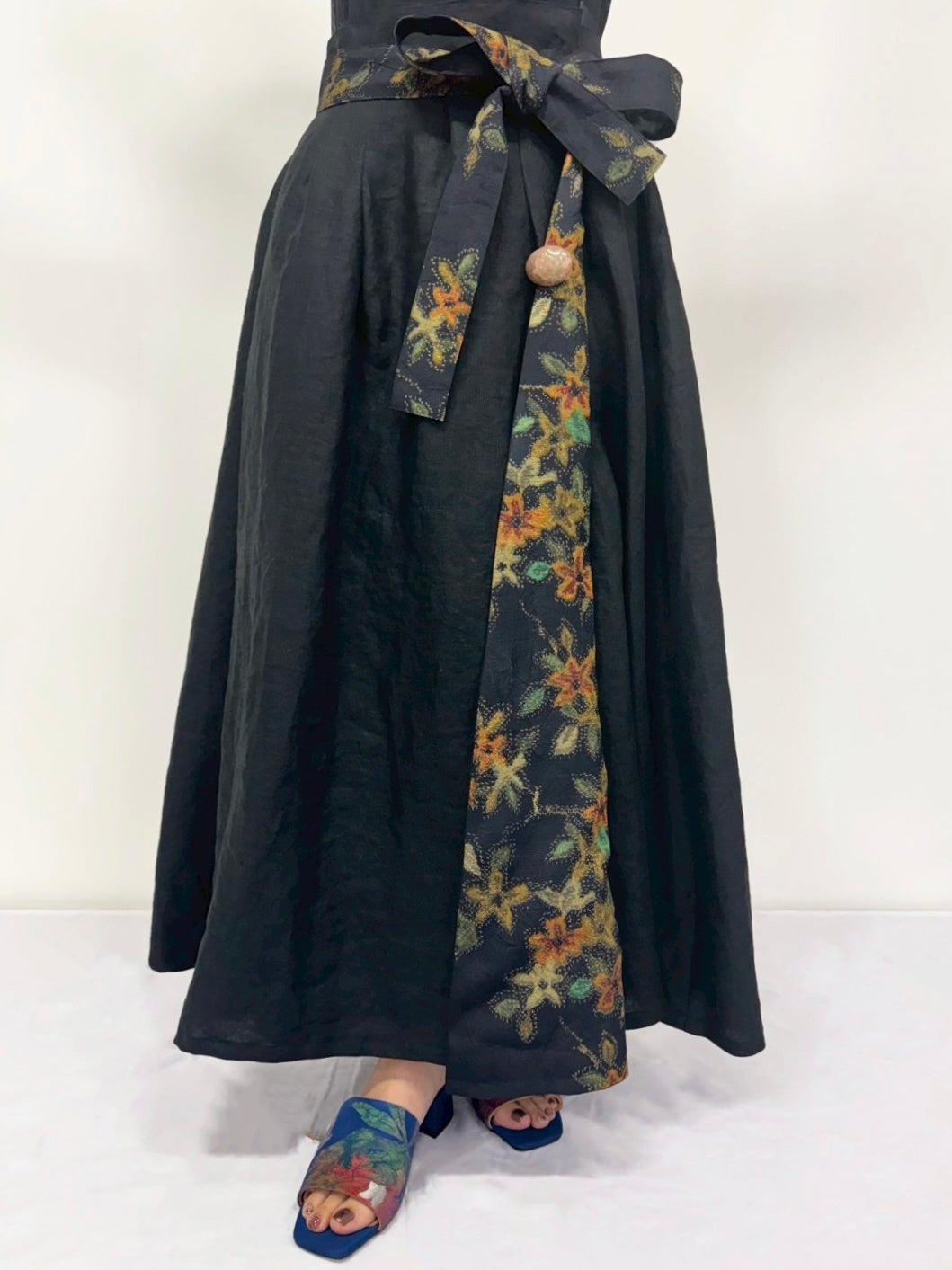 女性らしいシルエットのスカートにさり気なく着物をあしらいました。