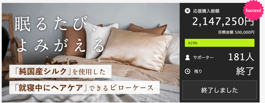 -Makuakeで応援購入総額429%を達成した「寝ているだけでヘアケアができる純国産のシルク枕カバー」の販売を開始。同時に購入者向けレビューキャンペーンを実施-