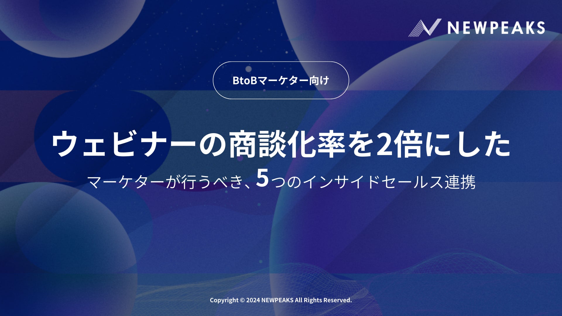 株式会社ニューピークス(本社:東京都渋谷区、代表取締役:小林 慶嗣)は、新たなホワイトペーパー「ウェビナーの商談化率を2倍にしたマーケターが行うべき、5つのインサイドセールス連携」を発表しました。このホワイトペーパーでは、ウェビナーやカンファレンスにおける商談化率を劇的に向上させるための具体的な方法と事例を詳しく解説しています。