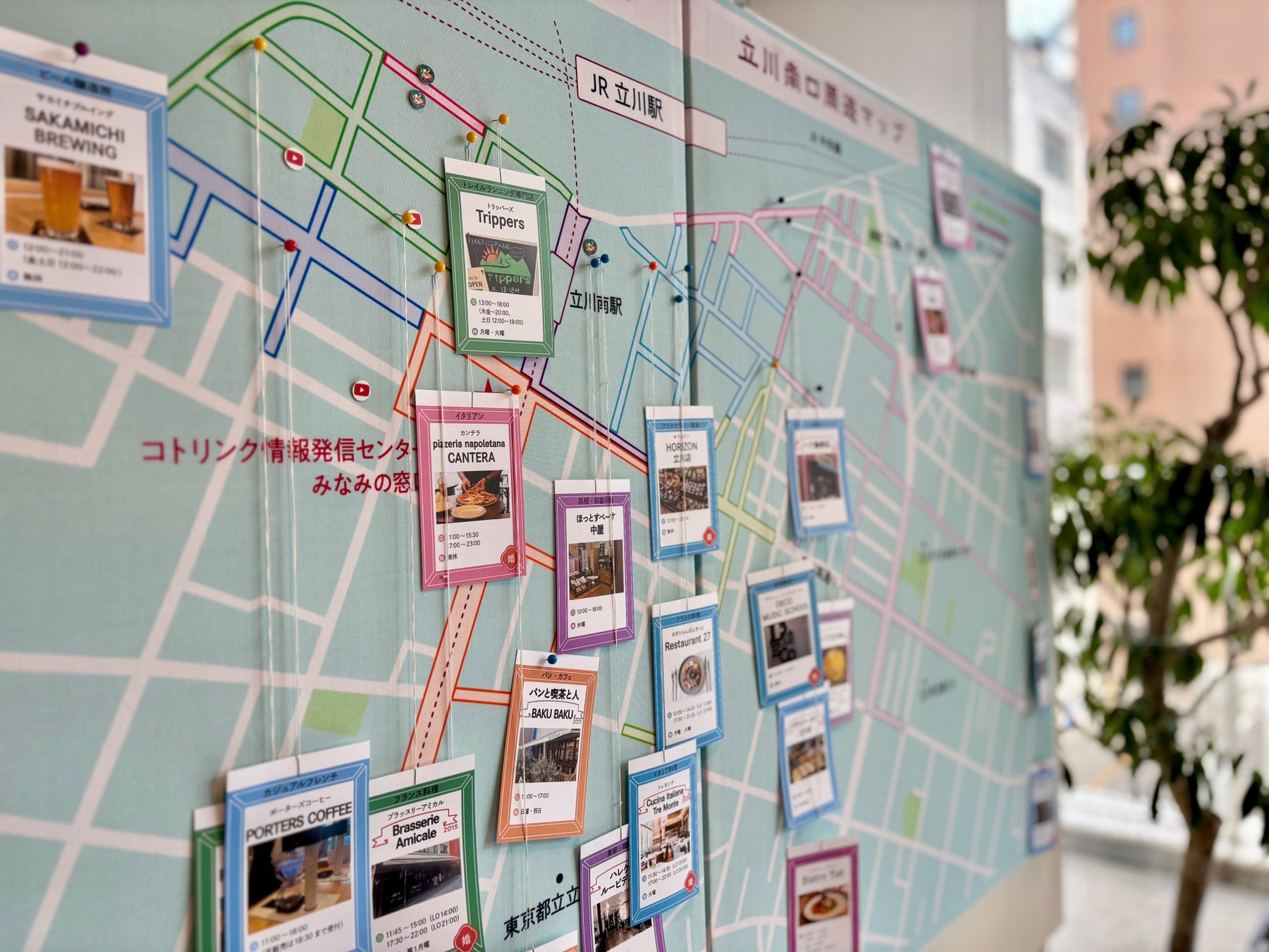 「みなみの窓口」は、立川駅南口のにぎわいと回遊性向上を促進するためのプロジェクト。立川南口には10もの商店街(南口西通り西会商店会、立川南口商店街、立川南口中央通り商店会、立川南口いろは通り商店街、立川南口すゞらん通り商店街、錦商店街、錦中央通り商店街、錦一二三商店会、諏訪通り商店街、日活大通り商店会)があり、約500店舗もの個性溢れる商店が点在しています。大正時代から続く老舗ラーメン店や、アクティビティが楽しめるスポーツ施設、話題のグルメ店など南口にしかないコンテンツがたくさん集まっています。