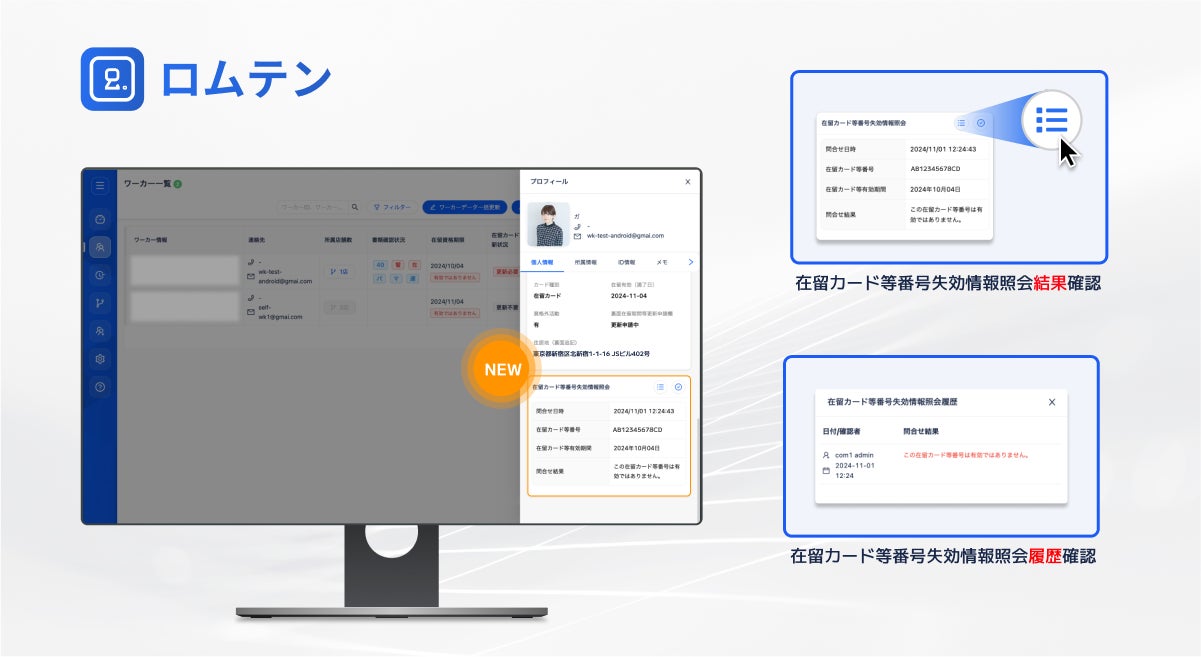 外国人従業員雇用管理サービス「 ロムテン 」に新機能~ 第二弾は 在留カード番号の失効情報照会の結果確認機能!