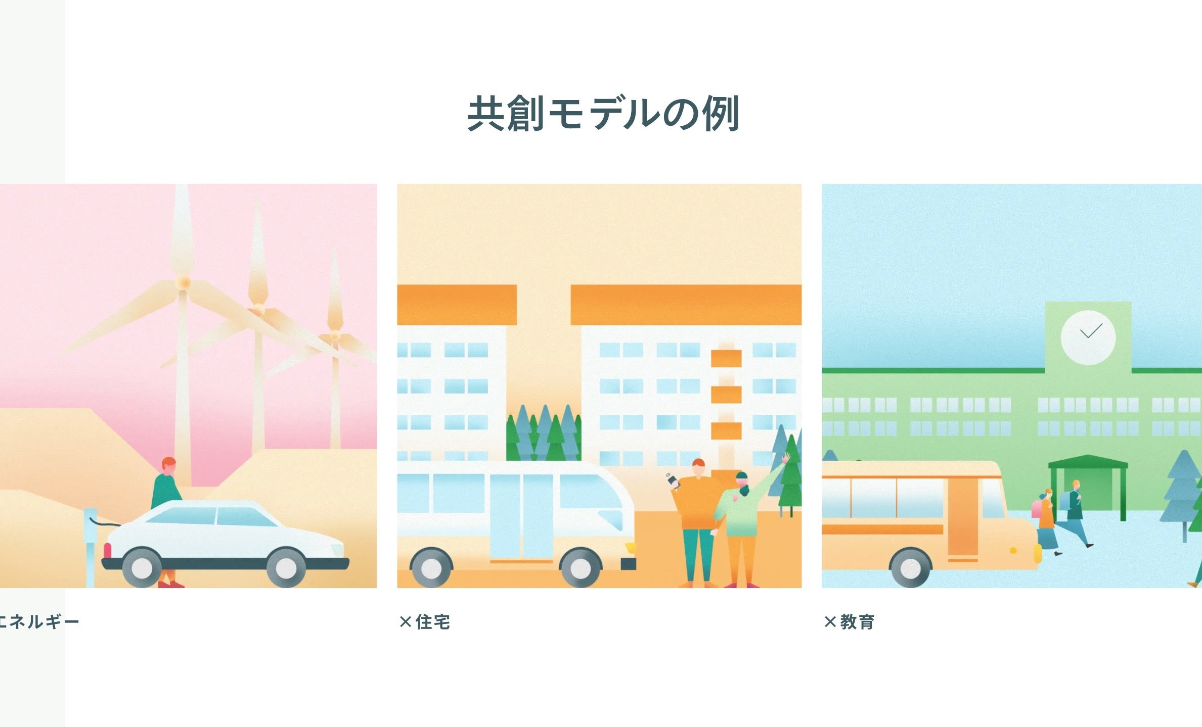 株式会社ニューピースでは、株式会社シフトブレインとチームを組み、VISIONING®*1の考えに基づき、「共創モデル実証プロジェクト」のコピー策定やHP作成などのクリエイティブ監修を行いました。