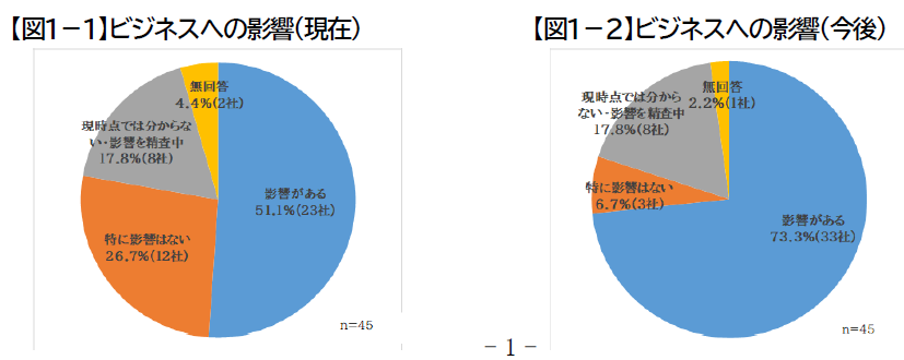 ○ 「今後影響がある」と回答したのは7割超(73.3%、33社)。