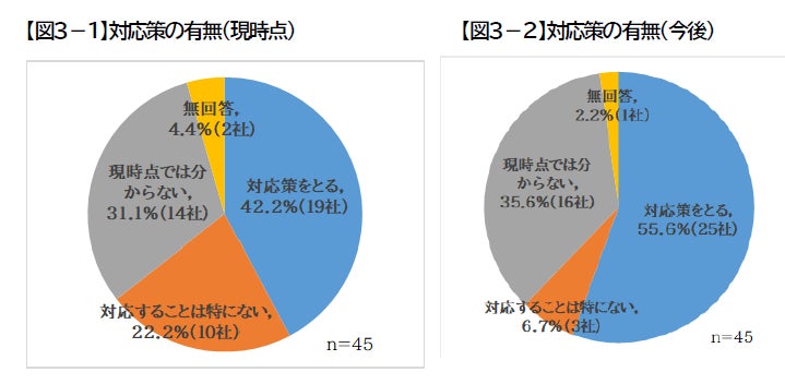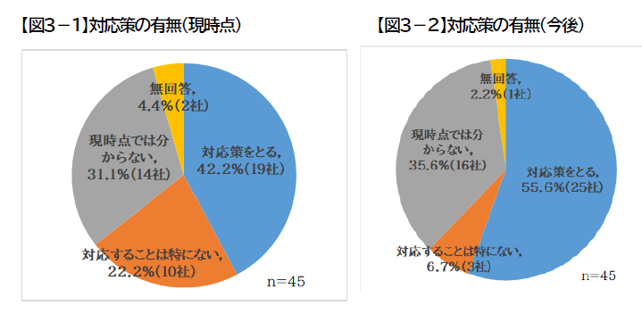 ○ 「現時点(準備中含む)で対応策をとる」と回答したのは4割超(42.2%、19社) 。