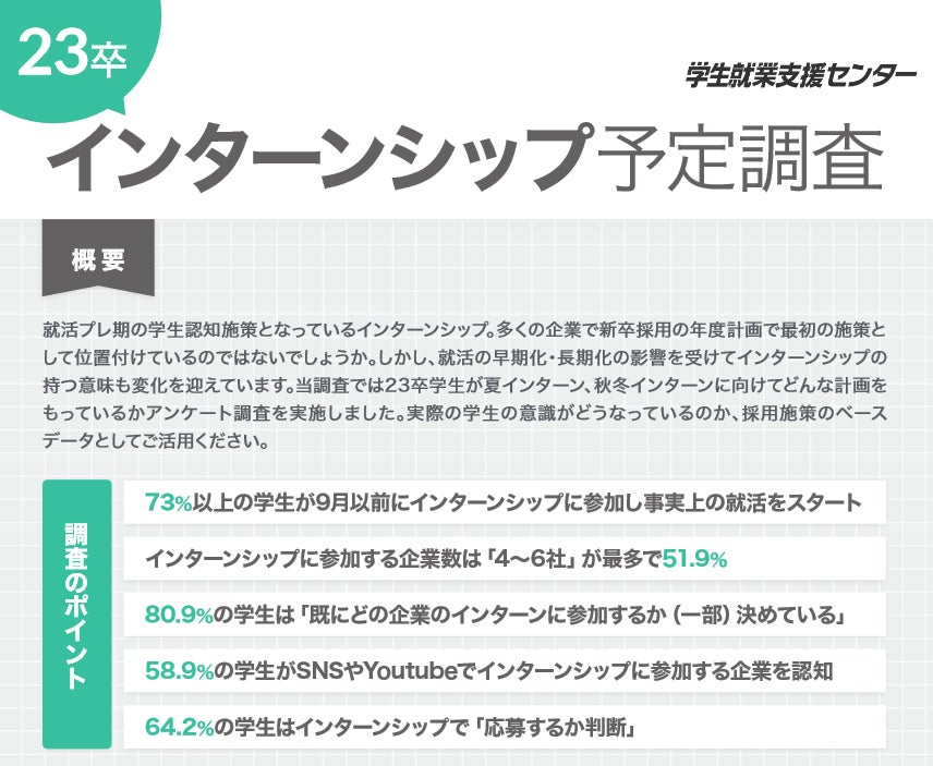 早期化で『インターンシップは企業絞り込み』へ 64.2%の学生はインターンシップで「応募するか判断」