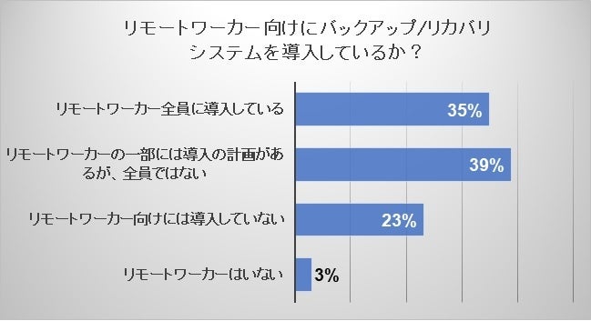 ●23%が、リモートワーカー向けにはバックアップ/リカバリ システムを導入していないと回答