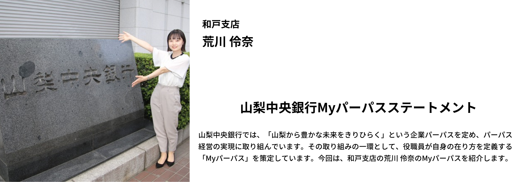 株式会社山梨中央銀行様では、「山梨から豊かな未来をきりひらく」を企業パーパスとして定め、パーパス経営の実現に取り組んでいます。また、長期ビジョン「Value Creation Bank」を掲げ、創業150周年に向けて、「『地域社会に豊かさを』『お客さまに笑顔を』『職員に働きがいを』そして『株主の皆さまに満足を』実現し、あらゆるステークホルダーの期待に応える金融グループを目指していく」と語られています。