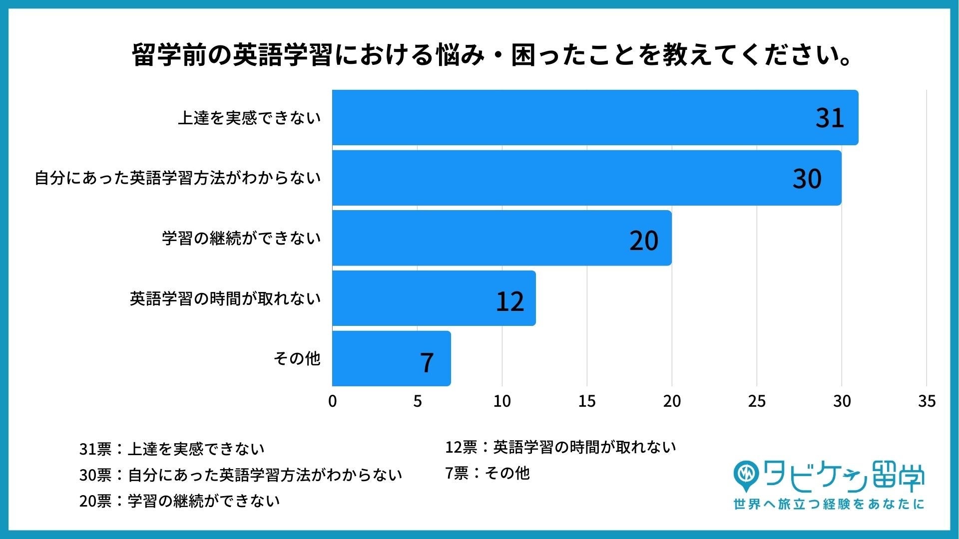 2位:自分にあった英語学習方法がわからない(30票)