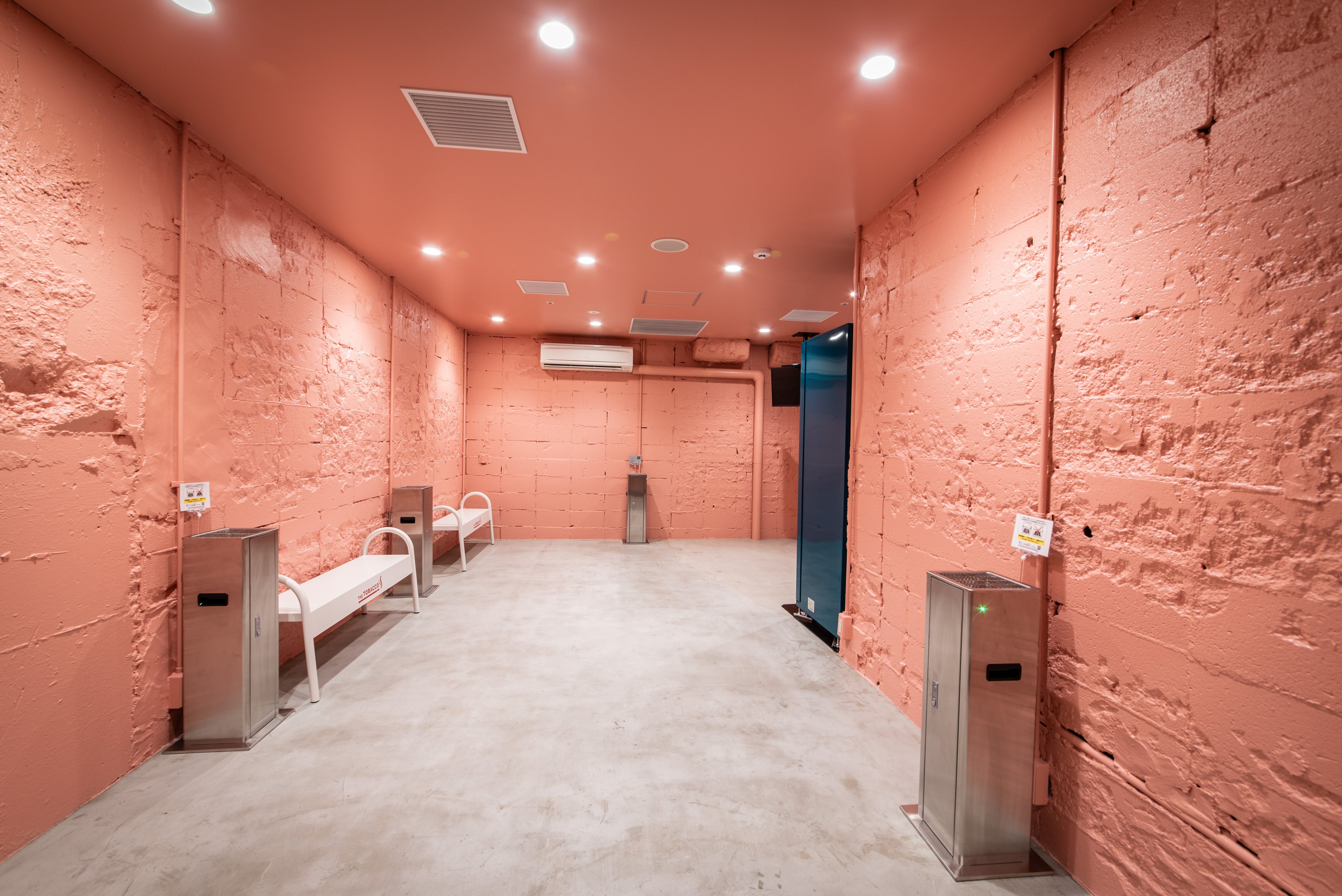 非喫煙者と喫煙者が心地よく共存できることを目指した新しいカタチの喫煙所です。改正健康増進法の施行により、屋内で喫煙できる場所が制限されていく中、喫煙者が積極的に立ち寄りたくなる場所をプロデュースすることで路上喫煙やポイ捨てなどのマナー違反を減らしていくことに寄与したいと考えています。これまでの喫煙所には見られない心地よい喫煙体験を演出するべく、クリーンでゆったりとした魅力的な喫煙シーンを演出し、ミニマルでモダンな雰囲気でありながらも、素材の温かみや細部のこだわりを感じることのできる空間を提供しています。