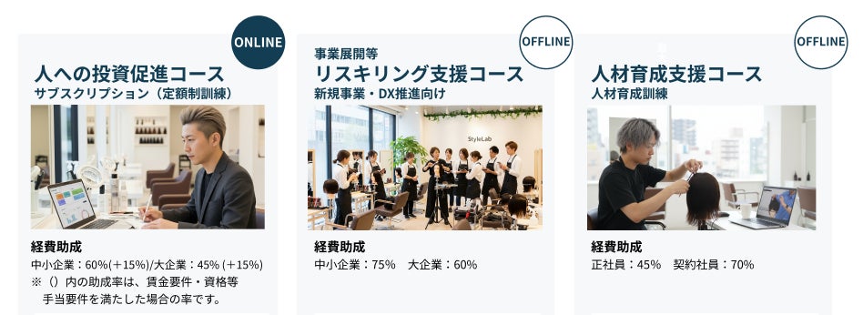 技術から接客・マネジメントまでを体系化人材開発支援助成金の活用で、最大約75パーセントのコスト削減も可能に。
