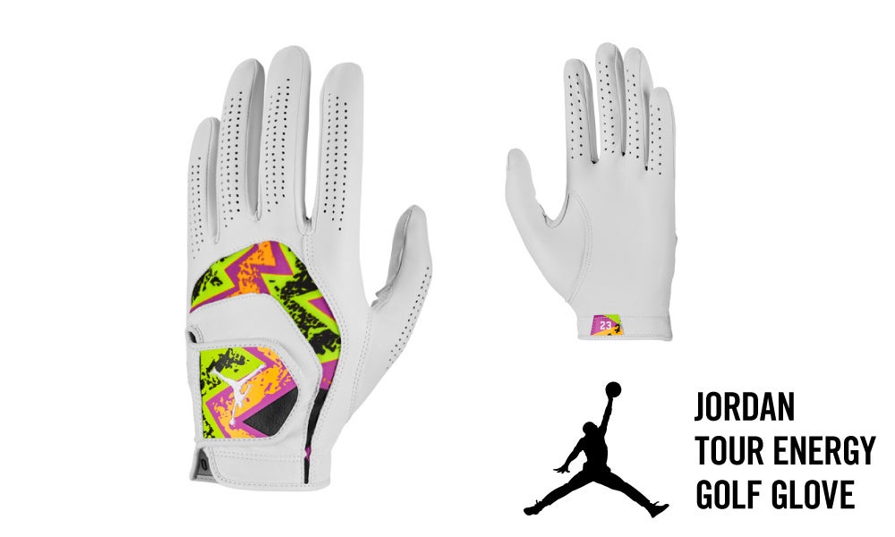 ツアー仕様の「ジョーダン ツアー エナジー ゴルフグローブ(左手用)」は複数サイズで展開。ホワイトを基調にしたマルチカラーが特徴で、価格は¥3,900(税込)。グリップ力とフィット感を追求し、プレー中のパフォーマンスを最大限に引き出します。