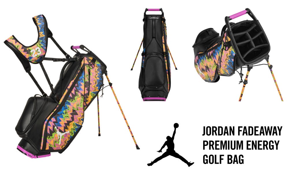 注目アイテムは、プレミアムな素材と機能性を兼ね備えた「ジョーダン フェイドアウェイ プレミアム エナジー ゴルフバッグ」。ジョーダンが着用したアパレルからインスパイアされた独特な柄を落とし込んだ、耐候性に優れた合成皮革を使用。6分割のフルレングスディバイダー、取り外し可能なストラップ、AJ14インスパイアのタオルリング、AJ6のレースロックを採用。細部にまでこだわった設計で、快適性と実用性を両立しています。価格は¥70,000(税込)。