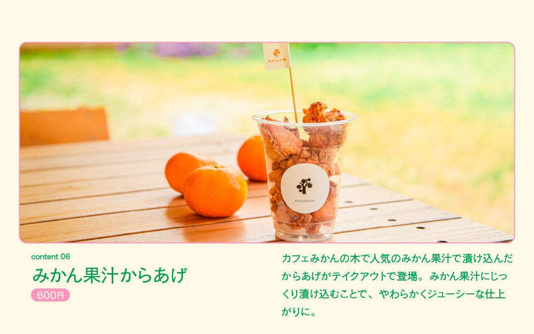 cafeみかんの木の人気商品「みかん果汁に漬け込んだ唐揚げ」