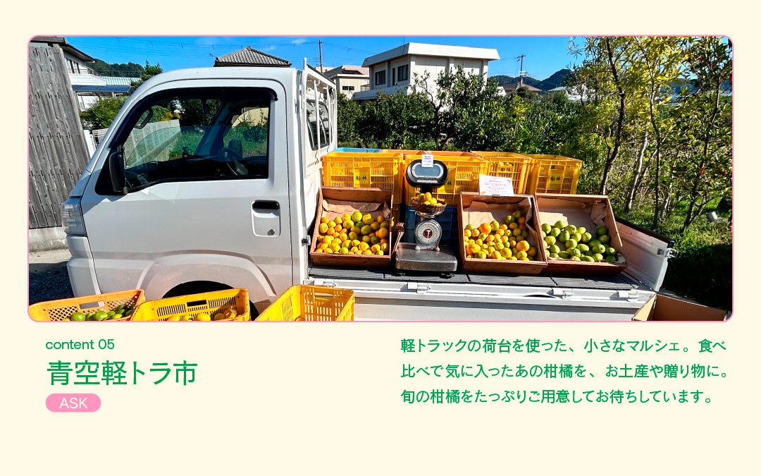 みかん畑の中のお店でイベント盛り沢山でお届けします。