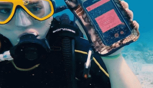 【ugo PHONE2.0】は水に浮くので発見するのも簡単で、すぐに回収できます。