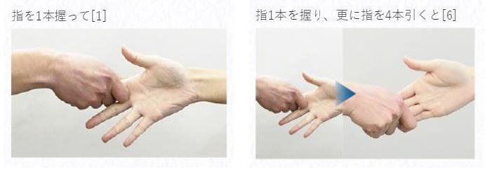 競り人が「エカエカ…」と威勢のよい掛け声を掛けながら行い、人差し指を1本握ると「1」、人差し指と中指2本で「2」、「5」までは順次握る指の本数を増やし、「6」以上はまず指を1本握り、そのあと指を何本握って引くかによって示されます。