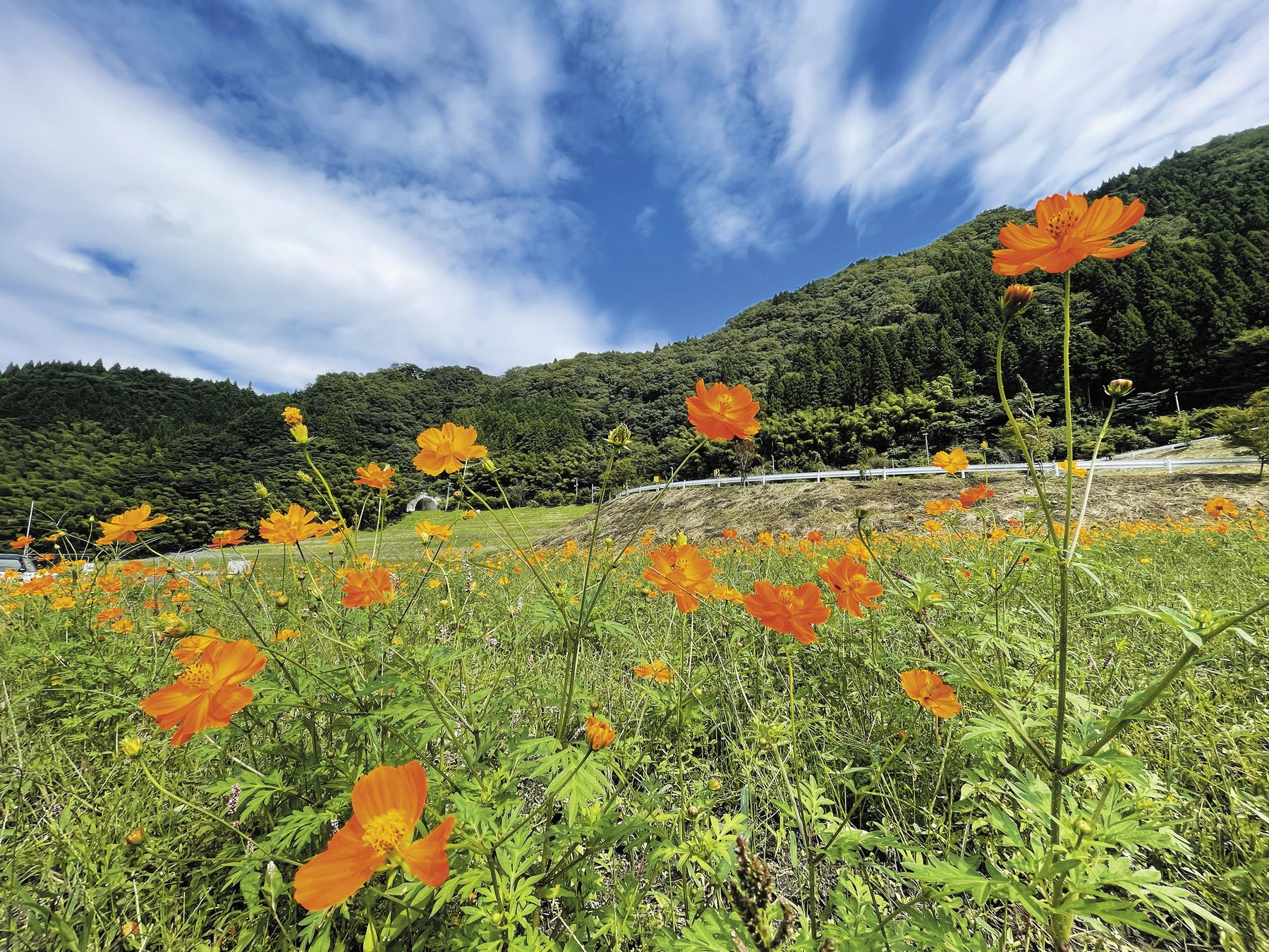 毎年9月下旬から10月上旬にかけて、約10ヘクタールの広大な畑に60万本ものコスモスが咲き乱れ、青空とともに秋の訪れを感じさせてくれます。フラワーバレーのイベント広場にある「志津見の名水」には、遠方からおいしい水を汲みに来られる方もいます。