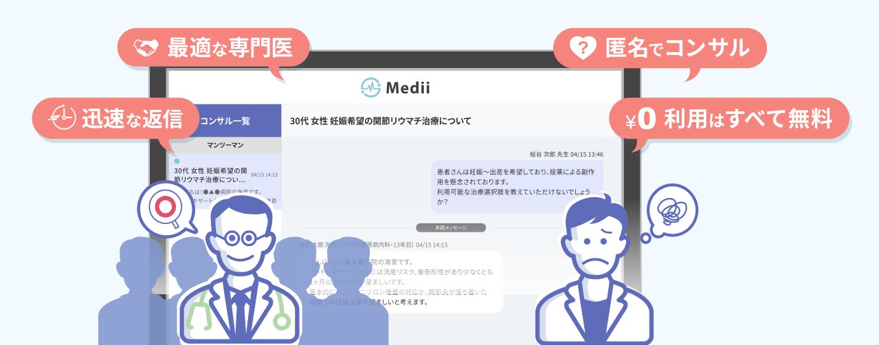 Mediiは、難病などの専門的な領域ほど深刻化している専門医偏在問題を解消するため、限りある専門医の知見を必要とする地域の医師へ届けるE-コンサルを医療現場へ浸透させていくことで、全国どの地域にいても等しく専門的な医療が受けられる社会の実現を目指していきます。