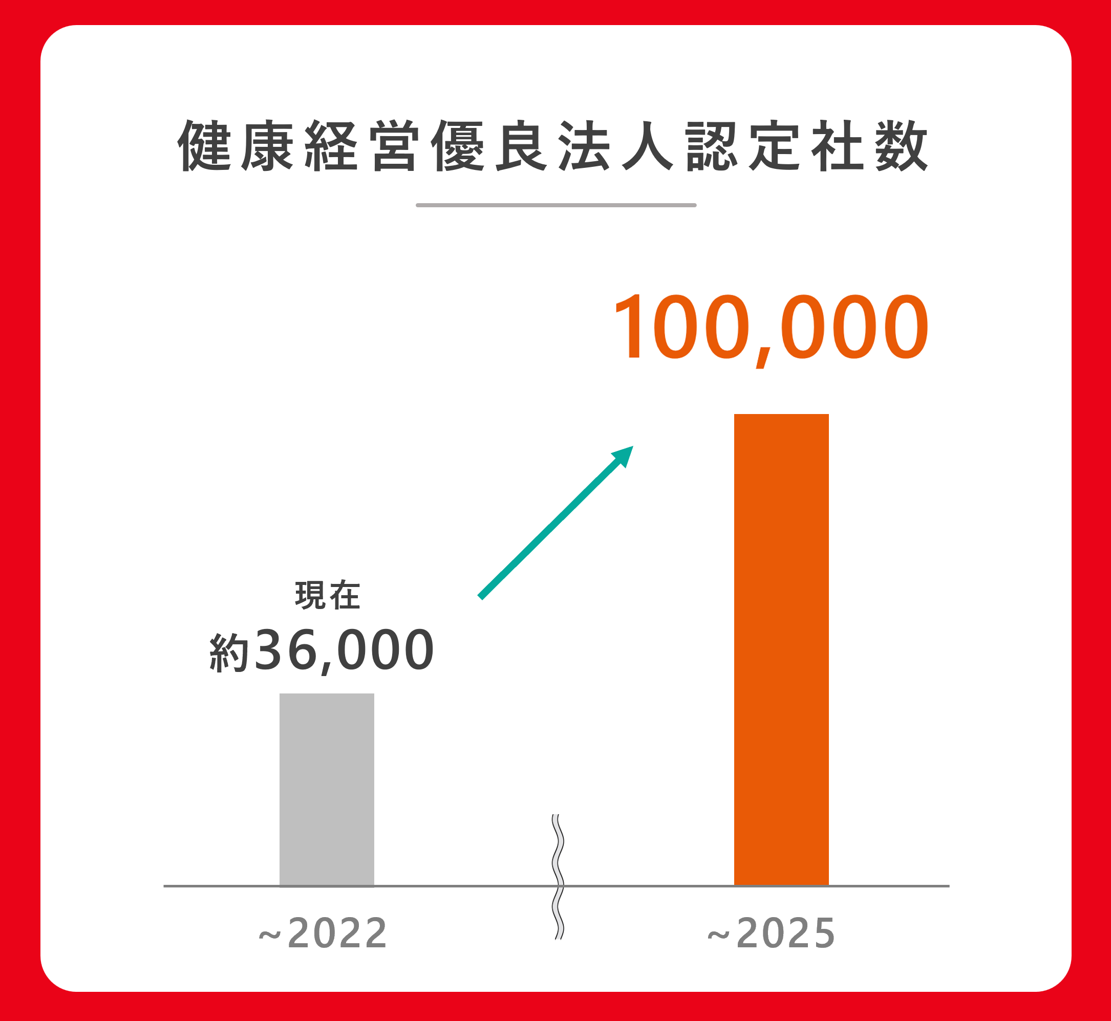 認定機関である日本健康会議では、「健康づくりに取り組む5つの実行宣言2025」の中で「健康経営に取り組む企業等を10万社以上」を目標として掲げており、今後3年間で認定企業はさらに増える見込みです。