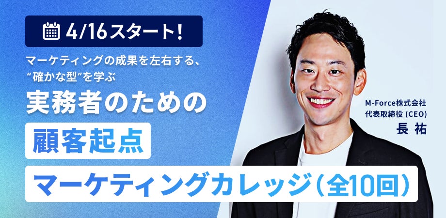 M-Force株式会社(本社:東京都港区、代表取締役:長 祐、以下 M-Force)は、大変好評をいただいている、顧客起点マーケティングを体系的に深く学ぶことができる有料講座「実務者のための顧客起点マーケティングカレッジ(全10回)」の第4期プログラムを、2026年4月16日(木)から6月25日(木)にかけて開講することをお知らせいたします。