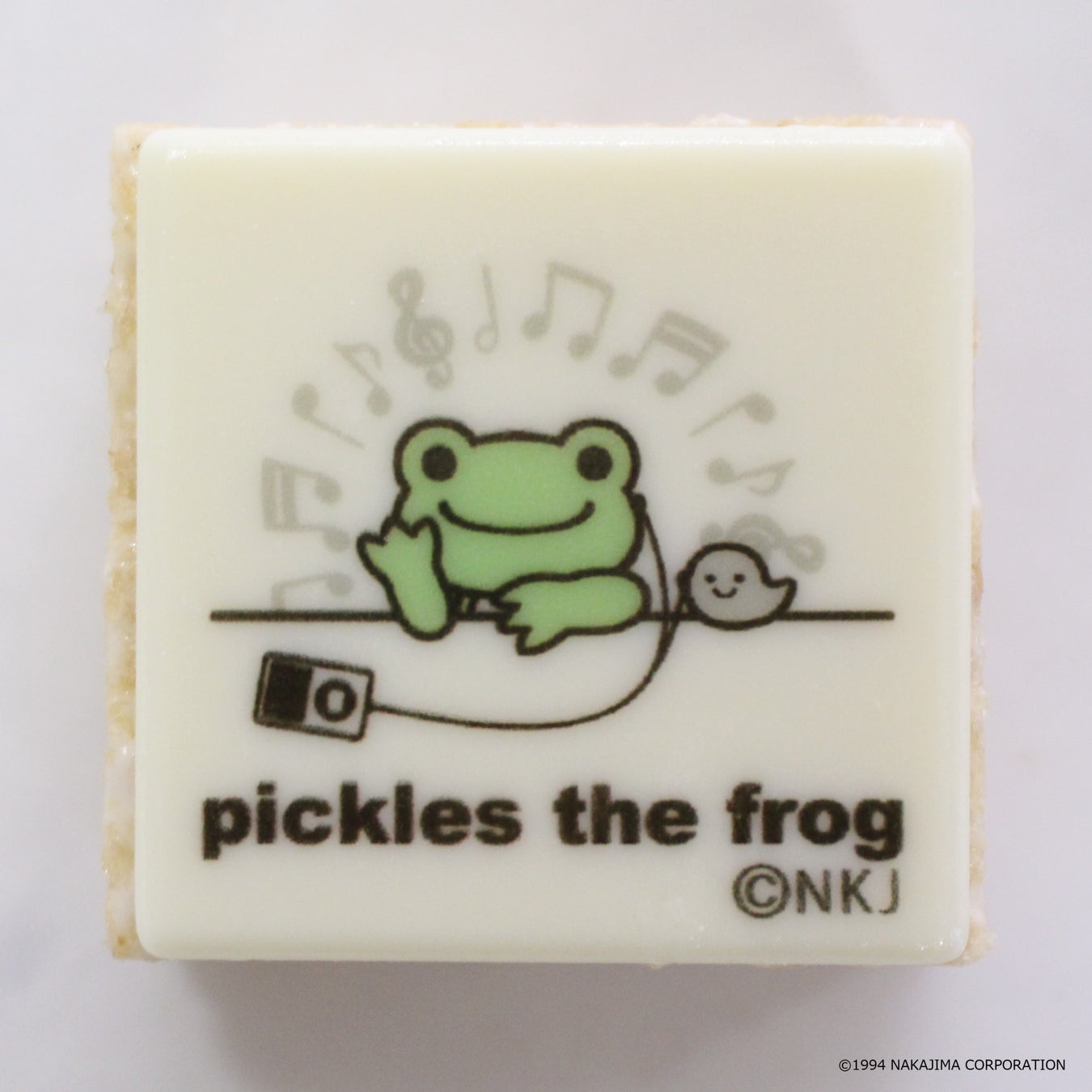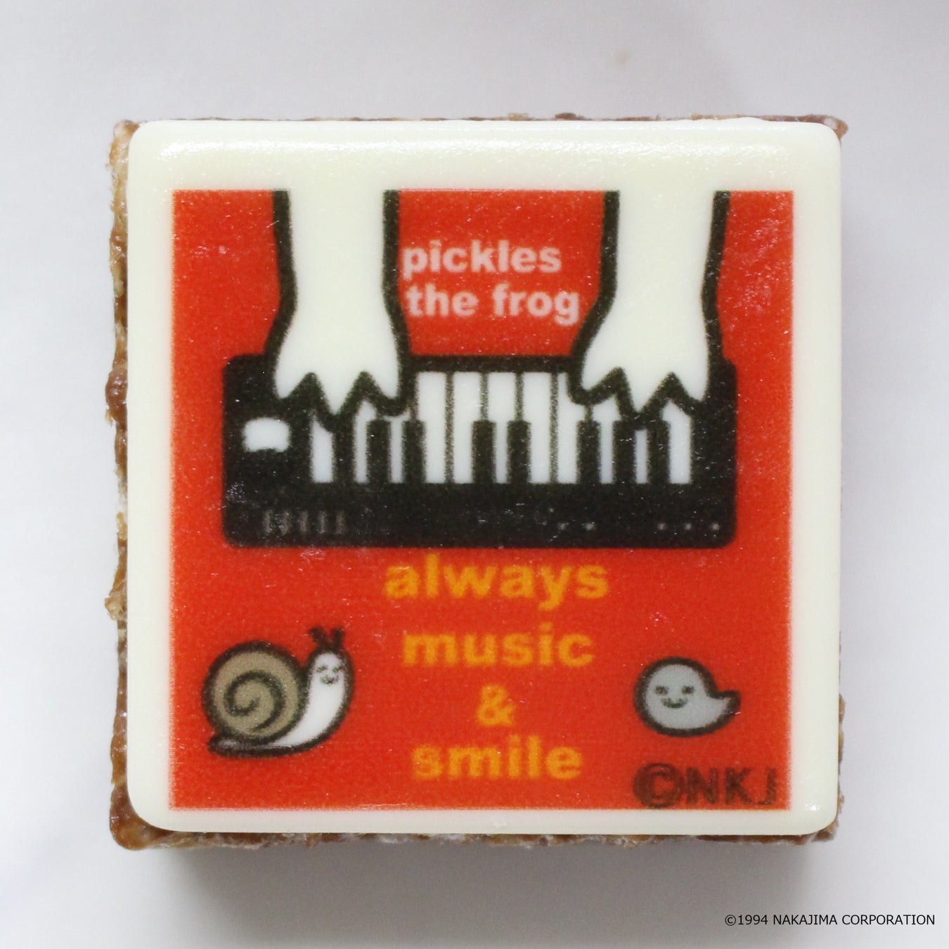 あみだ池大黒の”新感覚おこしブランド“を販売する「pon pon Ja pon ルクア イーレ店」では、コラボレーションスイーツとして“おこしケーキ” 「マシュー&クリスピー」からピクルス限定デザインの「M&Cケーキ かえるのピクルス」全6種(ミュージック/虹/マイク/ステレオ/キーボード/おんぷ) と、新登場のプリントクッキーカップ「かえるのピクルスコラボクッキー」を販売いたします。