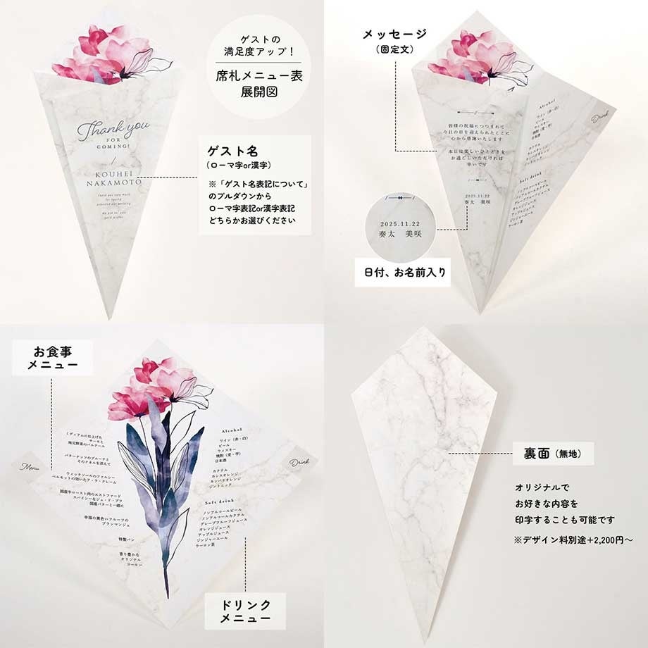 - 席札メニュー表「花束」シリーズでお悩み解消!