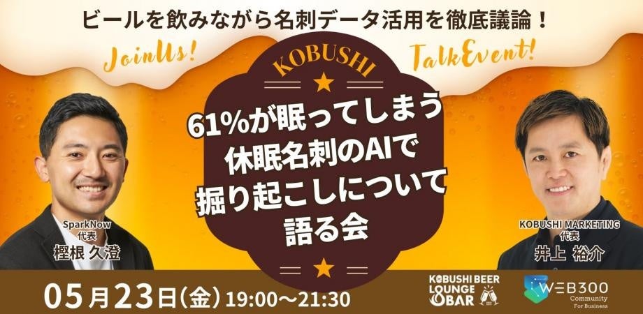 KOBUSHI MARKETING合同会社(東京都渋谷区、代表:井上裕介)が運営する渋谷道玄坂の『KOBUSHI BEER LOUNGE & BAR』では、人と人とを繋ぐユニークな取り組みを行い多くのビジネスチャンスを生み出している。そして今回、WEB300 communityとのコラボで、2025年5月23日(金)19:00~「名刺を活用して営業数字を上げる方法」をテーマにした飲み会イベントを開催すると発表した。