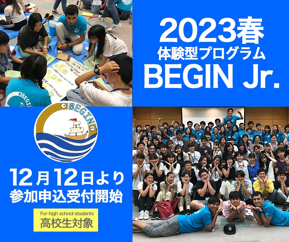 立命館アジア太平洋大学(大分県別府市、学長:出口治明、APU)が主催する高校生向けの大人気プログラム『BEGIN Jr.(ビギンジュニア)』を来春、2023年3月27日(月)〜30日(木)の4日間で実施することが決まりました。このプログラムは、「APUの基礎的な学びを通し、お互いの成長を無限に繋げる」をコンセプトに、問題発見や課題解決能力の向上を目指して、グループごとにミッションに挑戦しながら学びを得る体験型プログラムです。