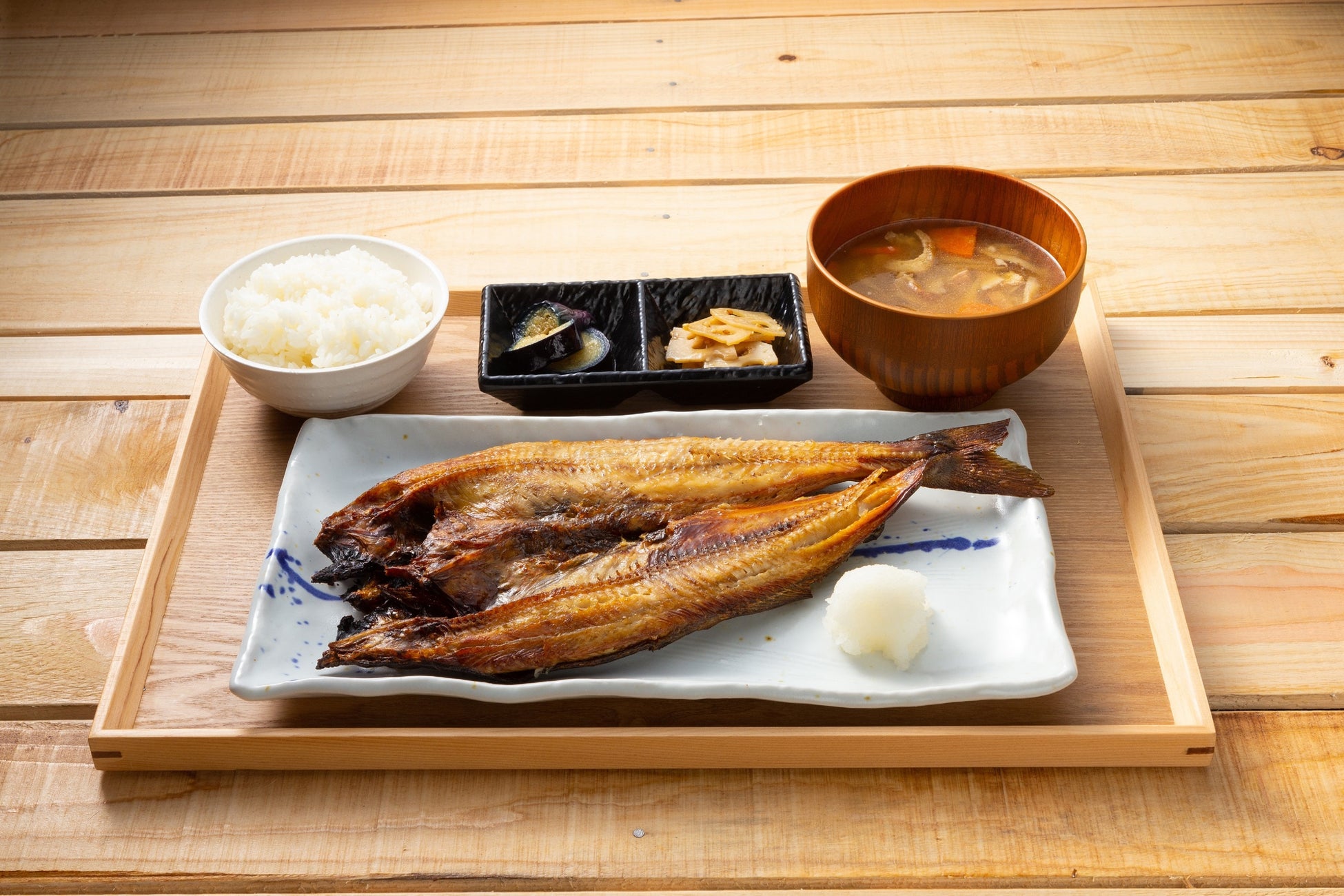 ご飯と味噌汁は、魚によく合う食材を厳選。ご飯は、北海道産「ななつぼし」。