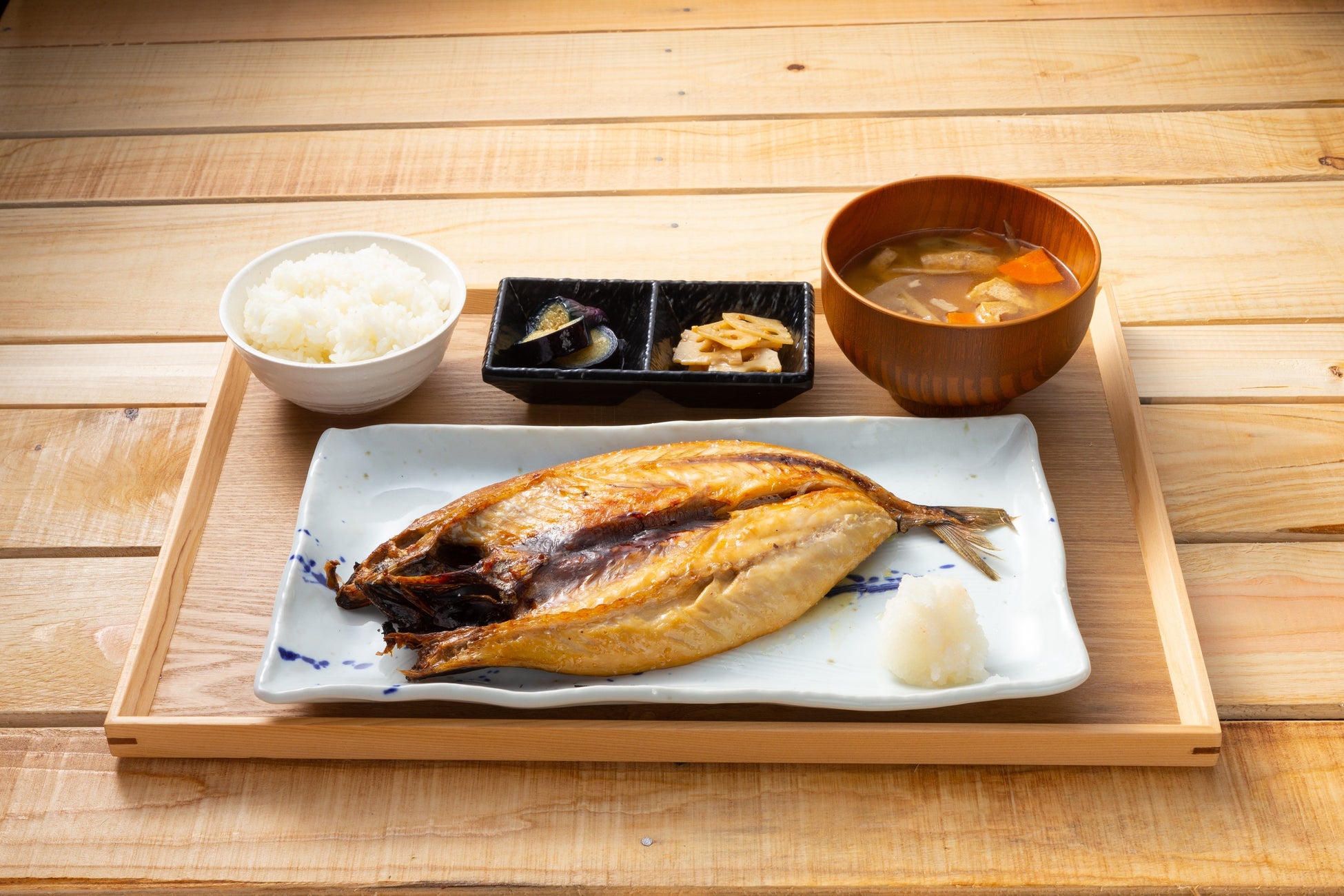 昼は、新名物の捌きたてアジフライを始め、干物定食や海鮮丼などをご用意。