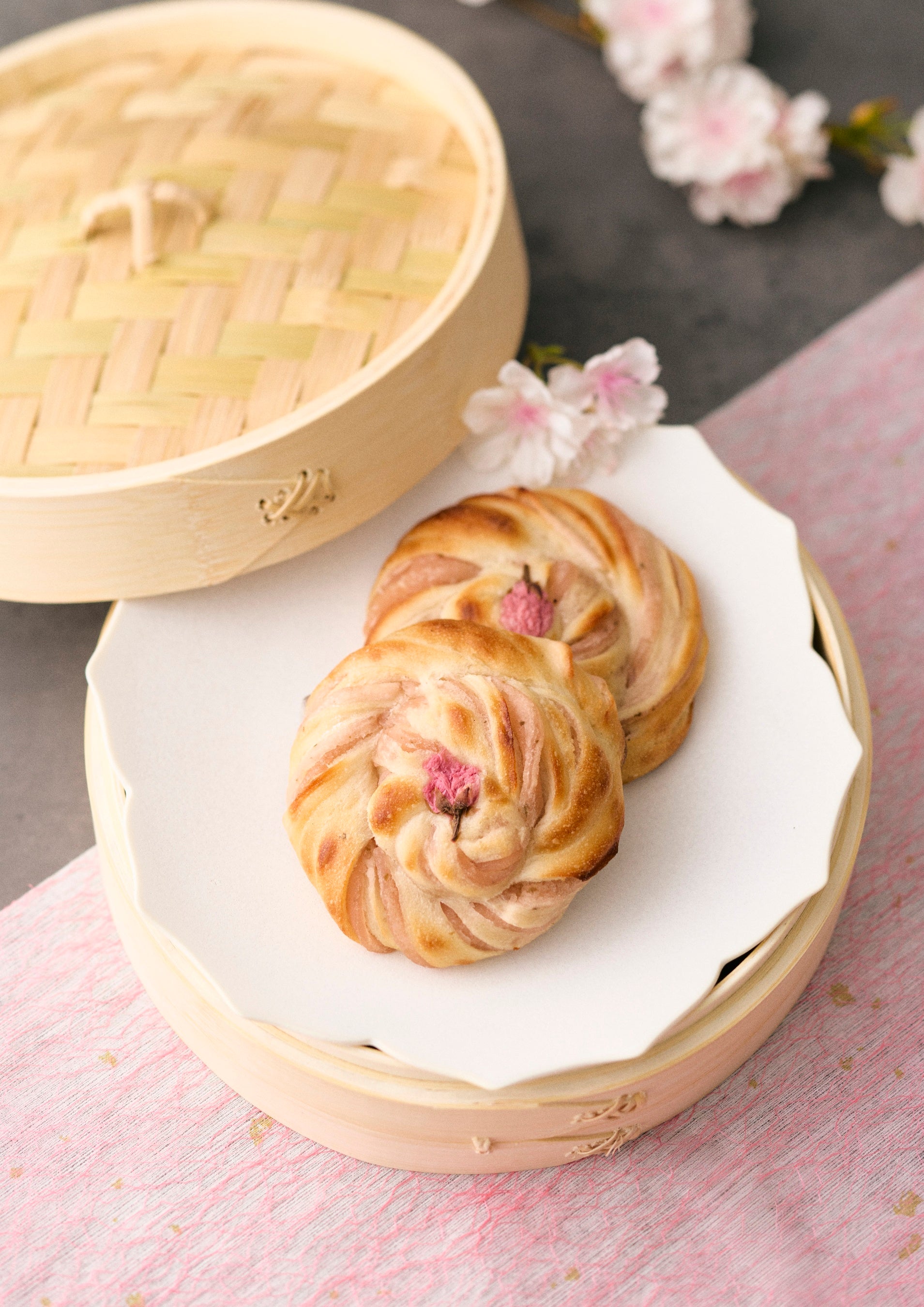 毎年4月に登場し、多くの方にご好評いただいている「桜あんぱん」がリニューアルして再登場します。今回のリニューアルでは、コムンのブレッド人気No.1の「桜と日本酒」の生地を贅沢に練り込んだことで、表面はカリッと香ばしく、中はもっちりとした食感に仕上げました。中の桜あんは、素材本来の風味を活かした、やさしい甘さに仕上げました。桜の花びらを思わせる可憐な形で、見た目でも春の息吹を感じられます。(画像左)