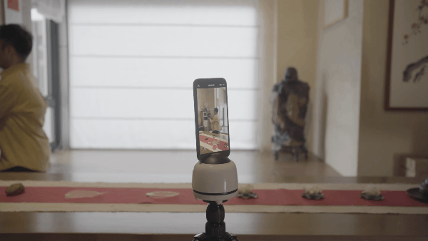 自動トラッキング機能搭載なので、被写体に合わせてスマホの位置や角度を変えたい時に、離れた場所からスマホの場所まで戻ってくる手間も必要もありません。